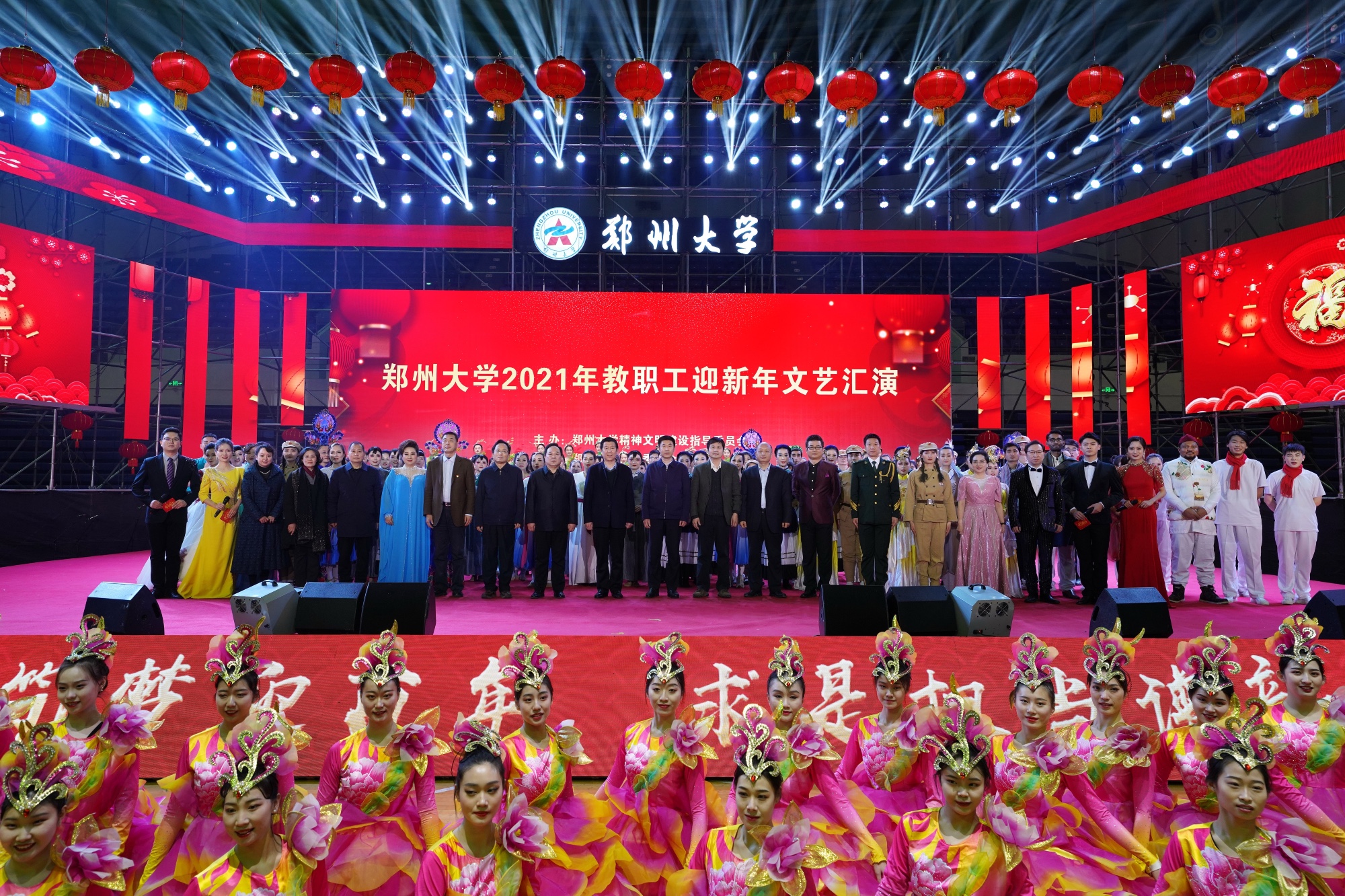 为营造喜庆祥和的迎新年氛围,展示广大师生的良好精神风貌,激发全体郑大人建设一流大学的奋进之力,12月31日,pp电子官方网站举办了“同心筑梦迎百年,求是担当谱新篇”2021年元旦系列文化活动。校园里华灯闪烁、流光溢彩,校领导宋争辉、王宗敏、李兴成、谷振清、许东升、关绍康、韩国河、吴宏阳、董子钢出席活动,全校师生欢歌笑语共迎新年。活动严格落实疫情防控常态化要求,采取线上线下相结合方式,全程线上直播。