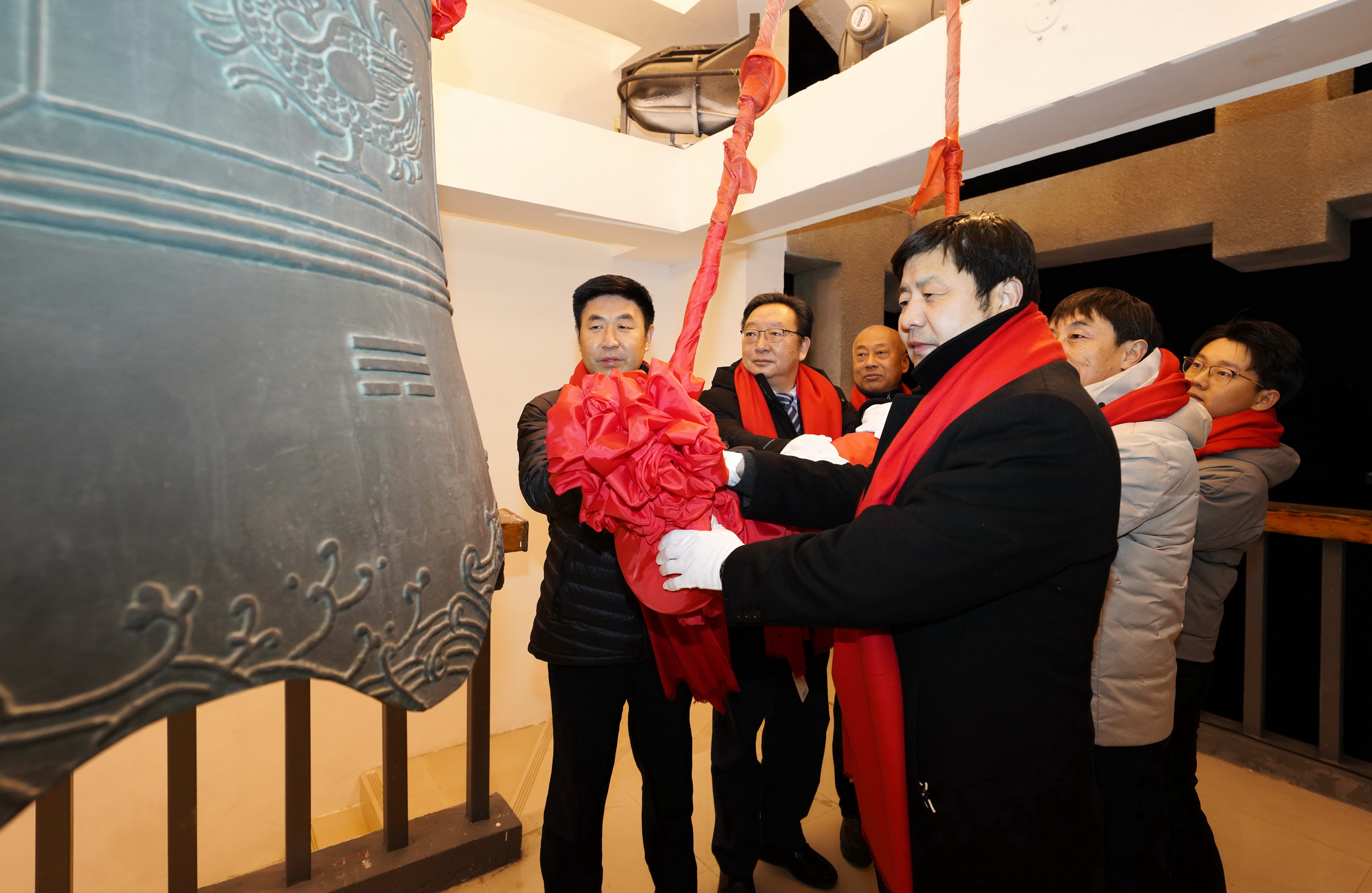 校党委书记宋争辉,校党委副书记、副校长王宗敏以及师生代表敲响新年钟声
