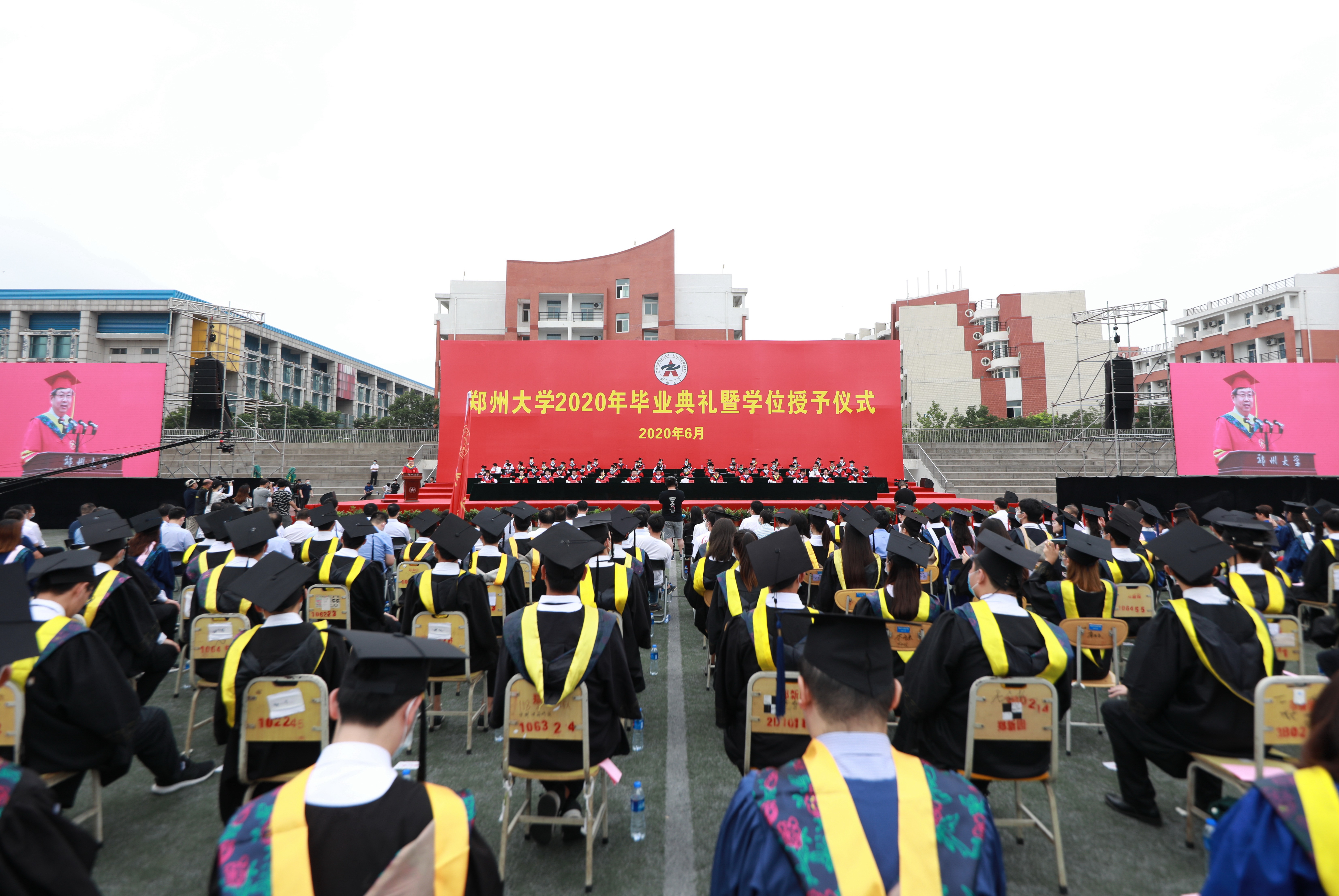 典礼开场播放了2020年毕业纪念视频。一帧帧画面、一个个片段,记录了学校师生的战疫时刻,回顾了郑大学子的成长历程,展现了学校巨大的发展变化,彰显了郑大人“求是 担当”的精神品格,引发了师生的强烈共鸣和温暖回忆。