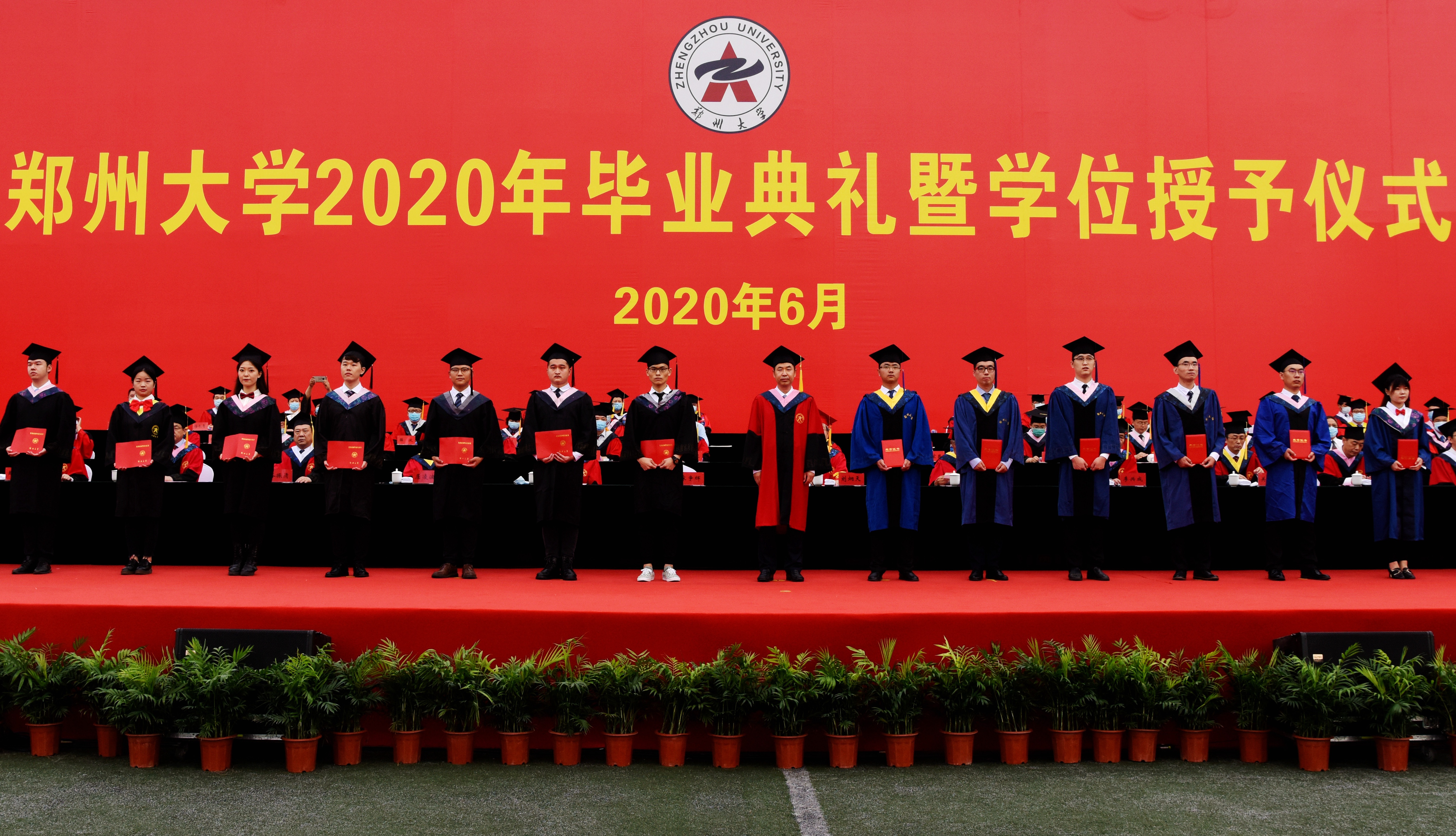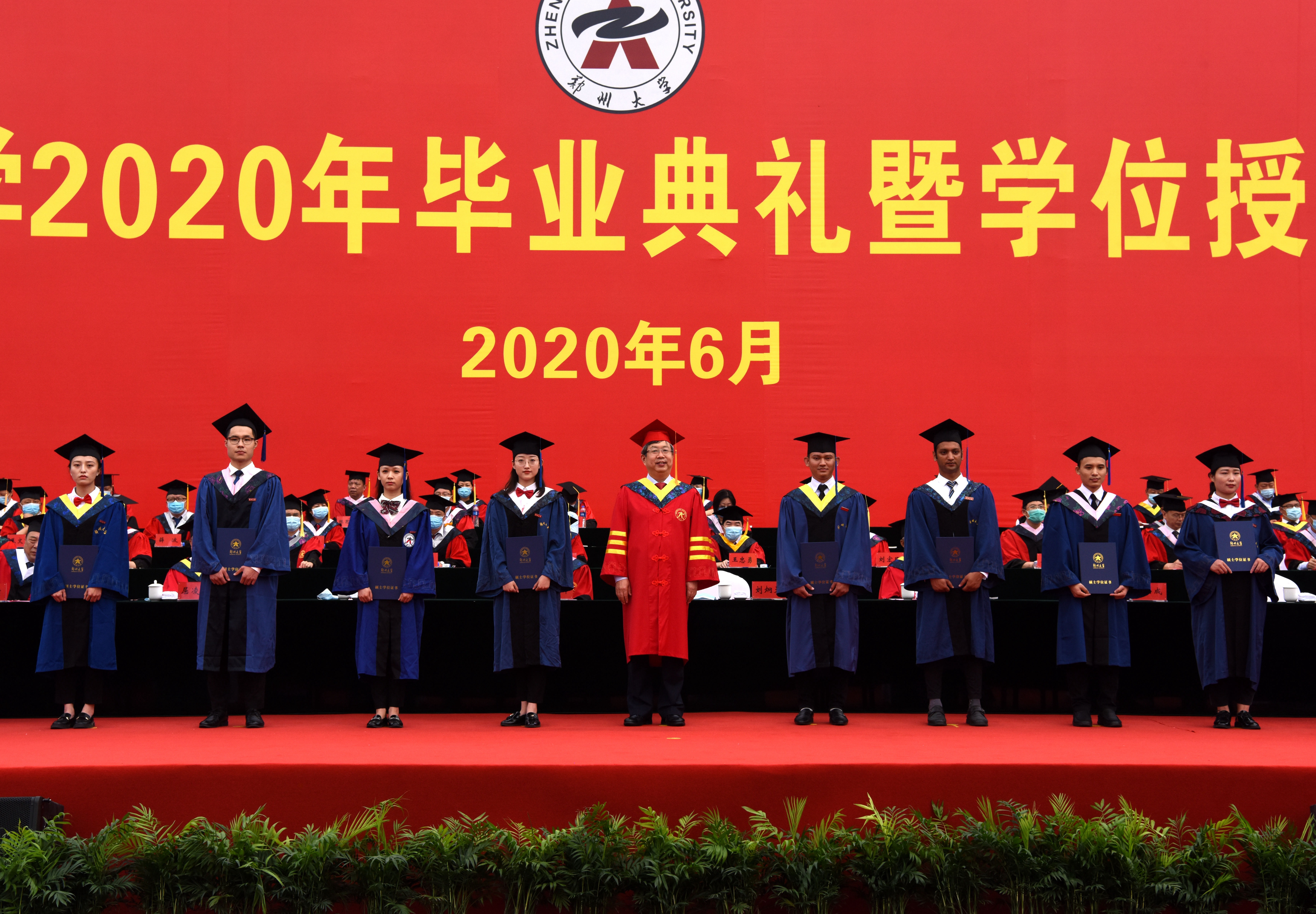 厚山脚下,踌躇满志,长做青春逐梦人;强国路上,韬励奋进,永当时代搏击者。6月28日上午,pp电子官方网站隆重举行2020年毕业典礼暨学位授予仪式,典礼采用线下与线上同步进行的“云毕业典礼”形式,2000名毕业生代表参加现场典礼,14000余名毕业生共聚云端线上观礼。校领导宋争辉、刘炯天、屈凌波、李兴成、谷振清、张倩红、关绍康、韩国河、吴宏阳、赵明皞、董子钢,中国科学院院士、物理学院首席教授霍裕平,中国工程院院士、材料科学与工程学院、河南省资源与材料工业技术研究院院长何季麟,pp电子官方网站第一附属医院院长刘章锁,校学位委员会委员、各院(系)主要负责同志等出席典礼并在主席台就坐,校内各单位主要负责同志、教师代表和2020届全体毕业生1.6余万人参加了毕业典礼。典礼仪式由副校长张倩红主持。