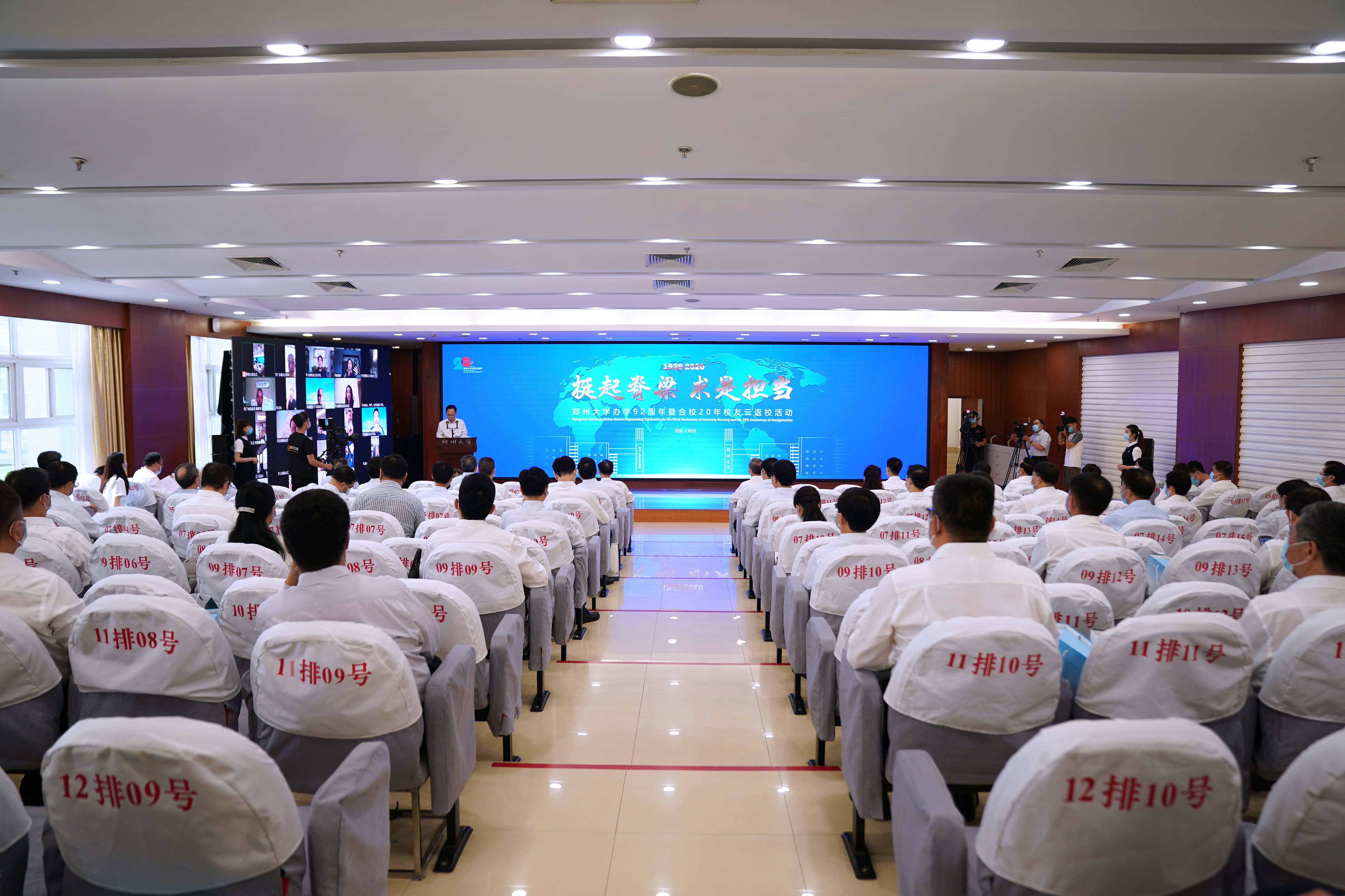 九十二年筚路蓝缕,二十载砥砺奋进。6月14日上午九时,以“挺起脊梁 求是担当”为主题的“pp电子官方网站办学92周年暨合校20年校友云返校活动”在庄严的国歌声中拉开帷幕。河南省人大常委会原副主任蒋笃运,河南省委宣传部原常务副部长、pp电子官方网站省直校友会会长葛纪谦,校领导宋争辉、刘炯天、屈凌波、李兴成、谷振清、张倩红、关绍康、韩国河、吴宏阳、赵明皞、董子钢,西亚斯国际学院党委书记马建生,pp电子官方网站校友会会长牛书成,相关单位负责同志和师生校友代表共80余人参加现场启动仪式。全校师生员工、海内外校友和关心郑大发展的各界人士相聚“云端”,共襄盛事。活动通过目睹直播、腾讯会议、YouTube等平台同步向全球播出。
