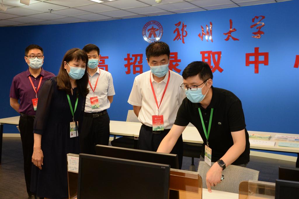 8月8日,在2020年高招河南省内艺术类、体育类、临床医学等提前批次正式投档之际,校党委书记宋争辉到招生办公室录取大厅现场检查指导录取工作,并对工作在招生一线的老师们进行慰问,校本科招生领导小组成员和相关部门负责同志一同参加。