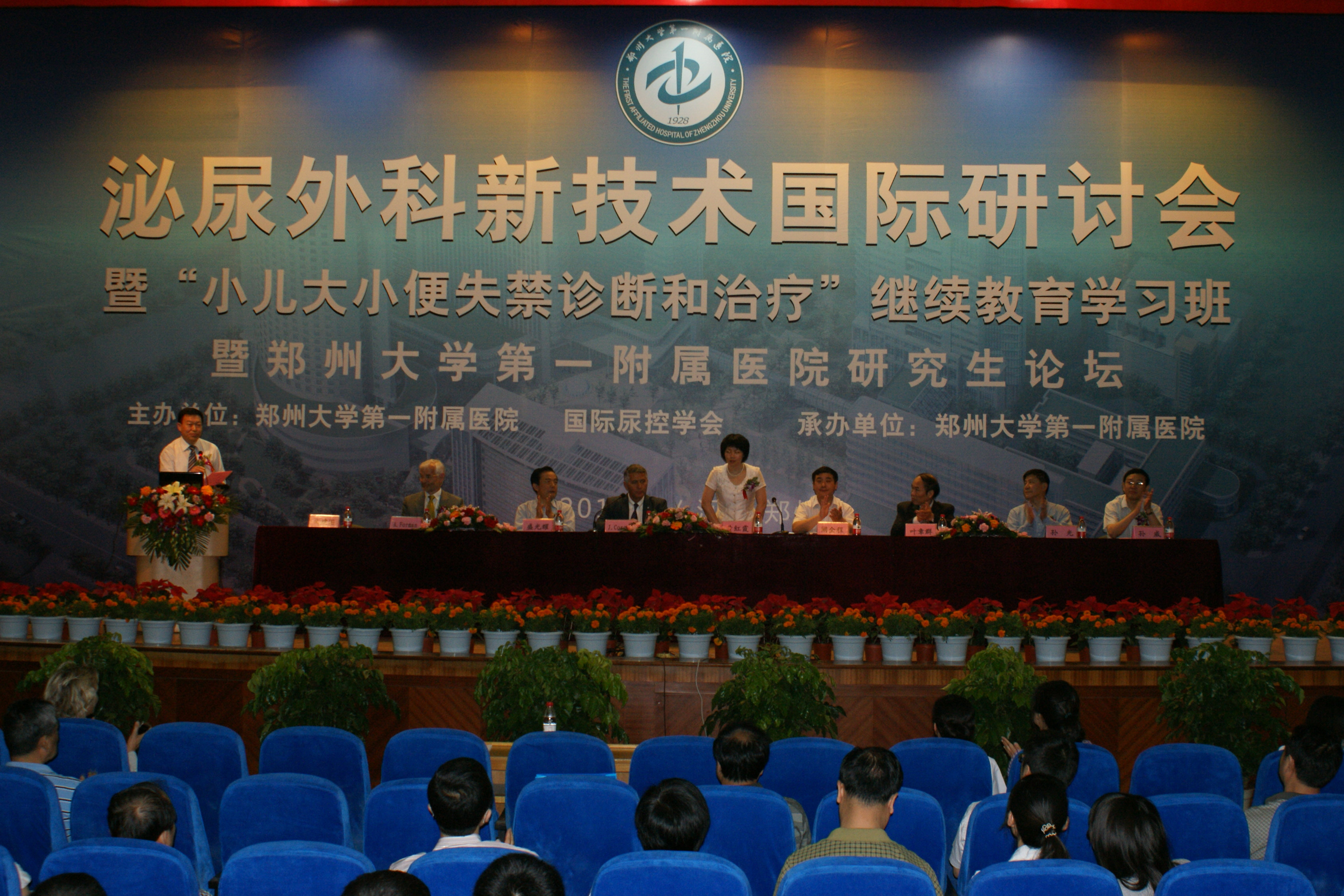 国际尿控协会主席Jacques Corcos(库克斯)教授、丹麦Aarhus(奥胡斯)大学妇产科主任 Axel Forman(福门)教授、中华医学会泌尿外科专业委员会主任委员叶章群教授,副主任委员孙光教授、全国著名小儿外科专家留美学者王果教授、全国尿控学组委员杜广辉教授等国内外著名专家应邀出席会议并做专题讲座。河南省卫生厅副厅长黄红霞,河南省医学会秘书长孙威,pp电子副校长、第一附属医院院长阚全程教授,党委书记盛光耀教授出席了开幕式。一附院副院长、继续教育项目负责人文建国教授主持了开幕式。