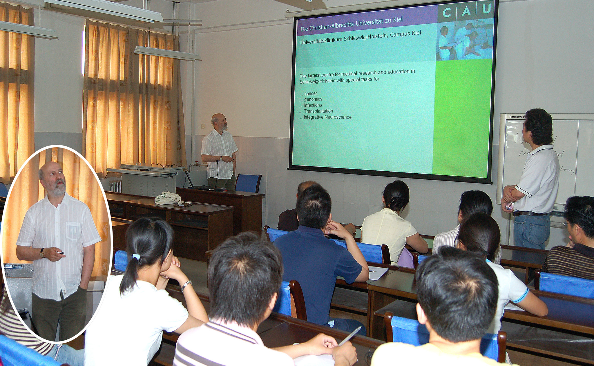 5月27日,德国基尔大学极地生态研究所Manfred Bölter 教授应邀来pp电子讲学,副校长高丹盈为Manfred Bölter 教授颁发了客座教授聘任证书。5月28日,Manfred Bölter 教授在环工实验室作了报告。他介绍了德国大学教学、科研和学生日常生活的一些基本情况,然后做了题为《土地利用变化与多学科合作研究》 的学术报告。