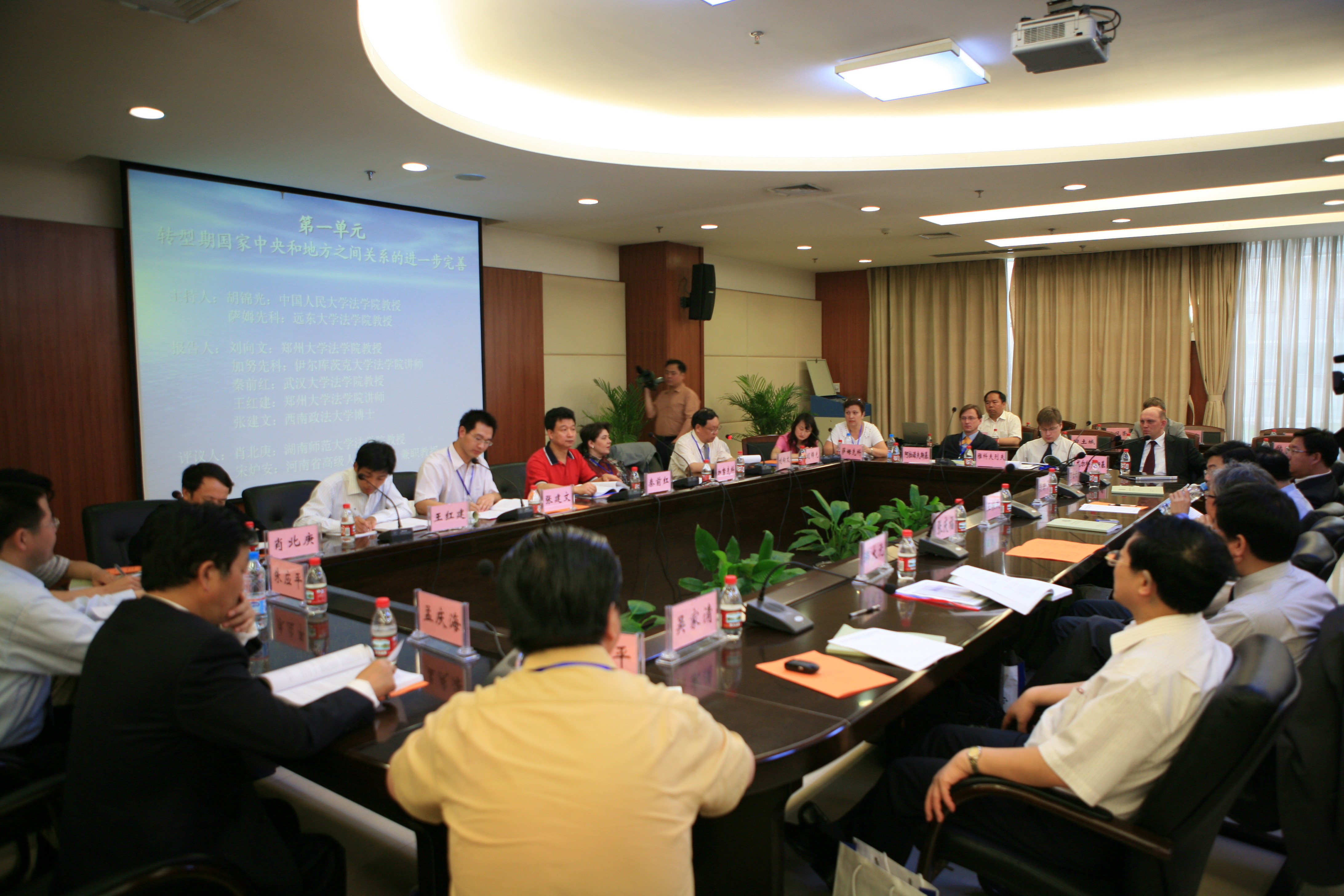 在为期一天的研讨中,与会代表围绕“转型时期国家中央和地方之间关系的进一步完善”、“转型期国家的人权保障制度”、“最高国家权力机关审查制向宪法法院审查制转变的必备条件问题”、“社会转型与宪政建设”四大议题展开了深入而富有成效的交流。