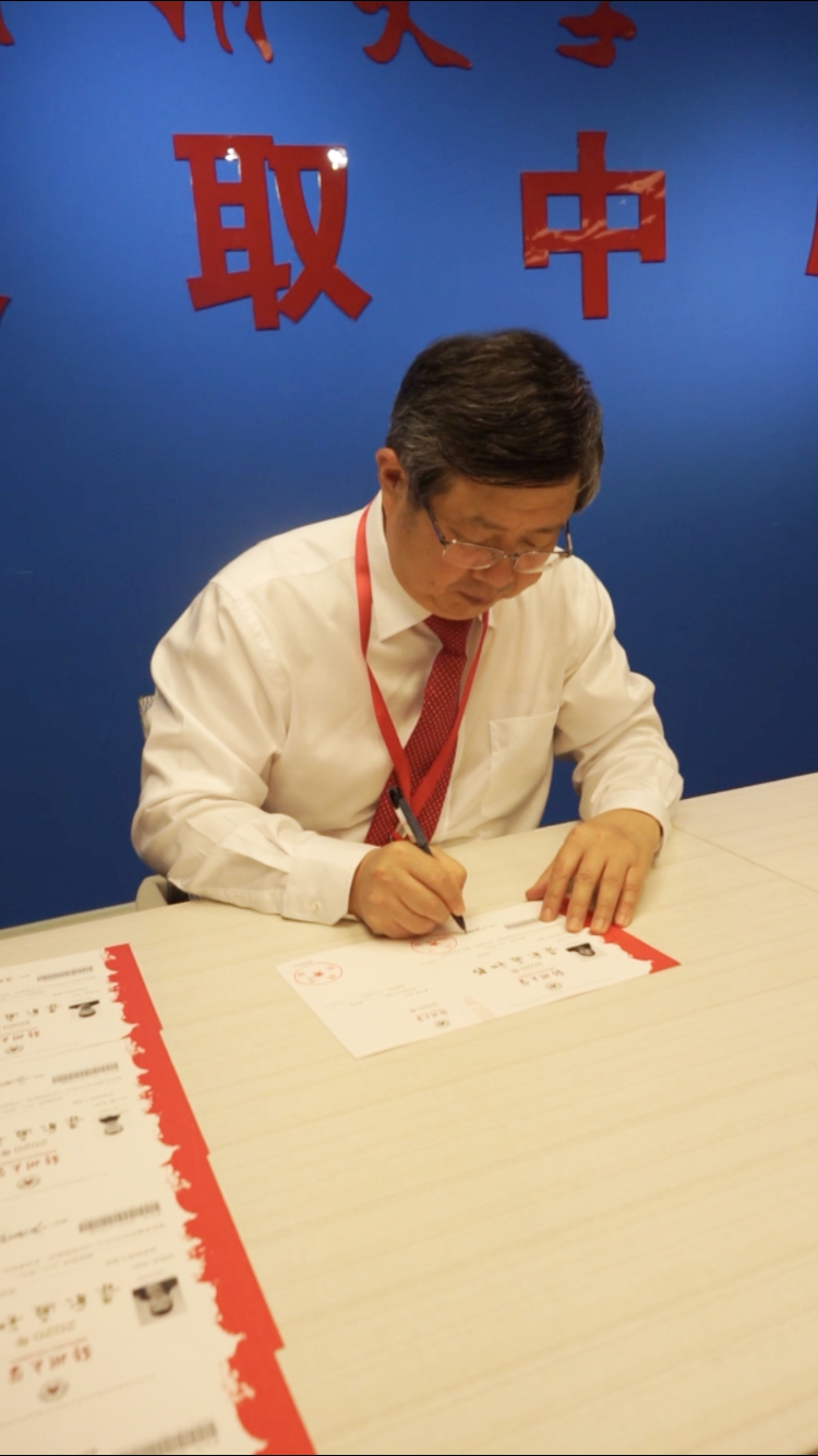 8月16日上午,pp电子官方网站2020年高招首批录取通知书现场签发仪式在主校区招生录取大厅举行。河南省政协副主席、pp电子官方网站校长刘炯天签发了2020年首批本科生录取通知书。校长办公室、校纪委、学生处、招生办公室等单位负责人参加仪式。大象新闻对此次活动进行了在线直播。