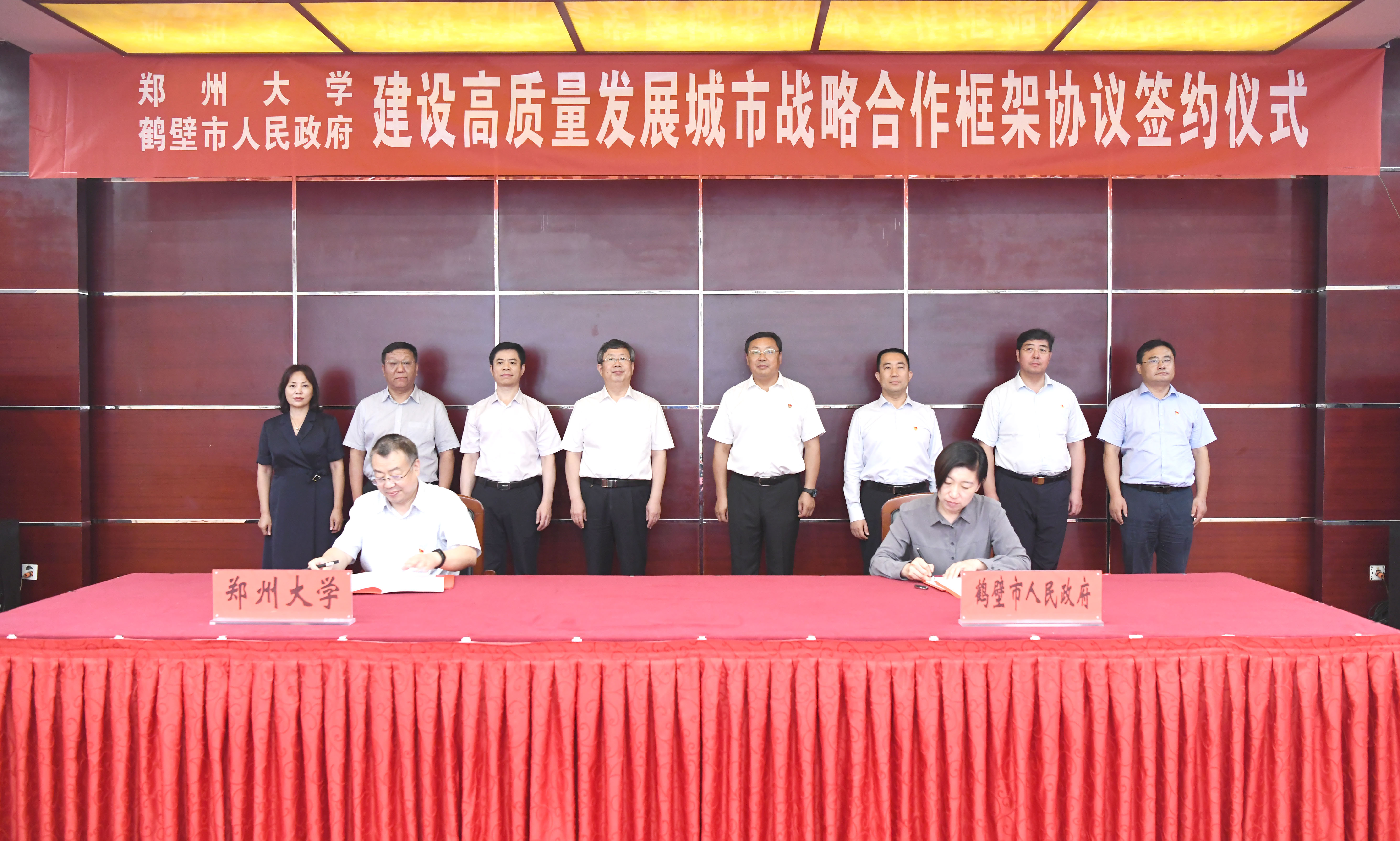 8月19日上午,pp电子官方网站与鹤壁市人民政府建设高质量发展城市战略合作协议签约仪式在鹤壁市隆重举行。鹤壁市市委书记马富国,市长郭浩,市委副书记张然,市委常委、市委秘书长王泽华,副市长李小莉,河南省政协副主席、pp电子官方网站校长刘炯天,校党委常委、副校长屈凌波出席签约仪式,双方相关单位负责同志参加签约仪式。