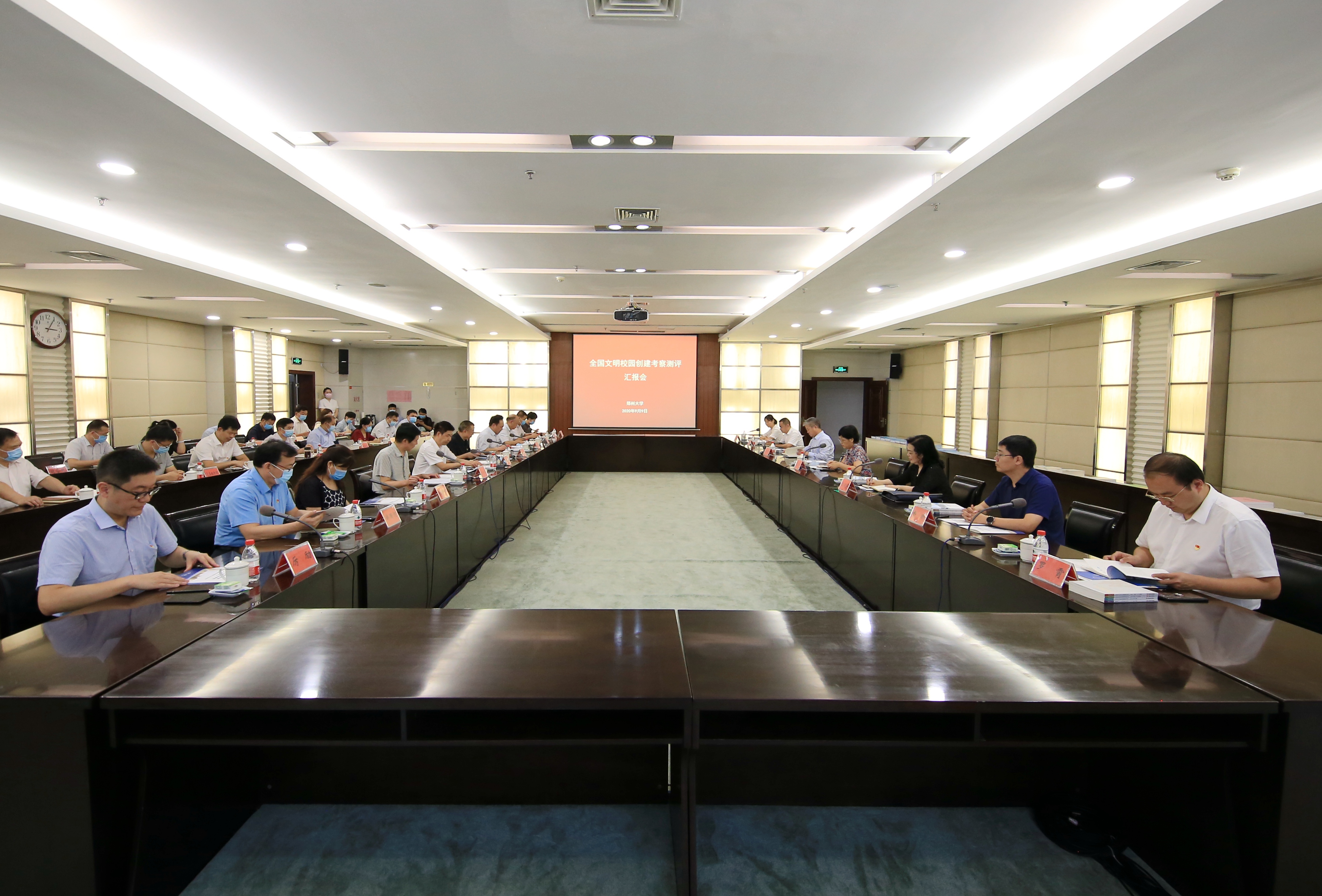 9月9日,省文明办、省教育厅检查组一行来到pp电子官方网站,对全国文明校园创建工作进行考评验收。省委宣传部思想道德建设处处长葛卫华、省教育厅思政处二级调研员张延华、省直文明办主任王勇生,校领导宋争辉、屈凌波、李兴成、张倩红、许东升、韩国河、吴宏阳等出席工作汇报会,检查组其他成员及学校文明委成员单位负责同志参加汇报会。会议由校党委副书记谷振清主持。