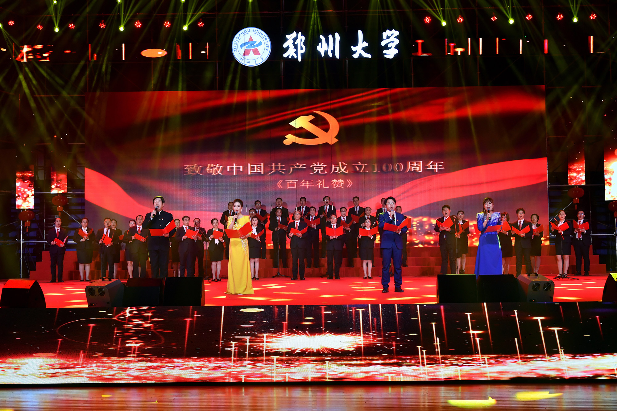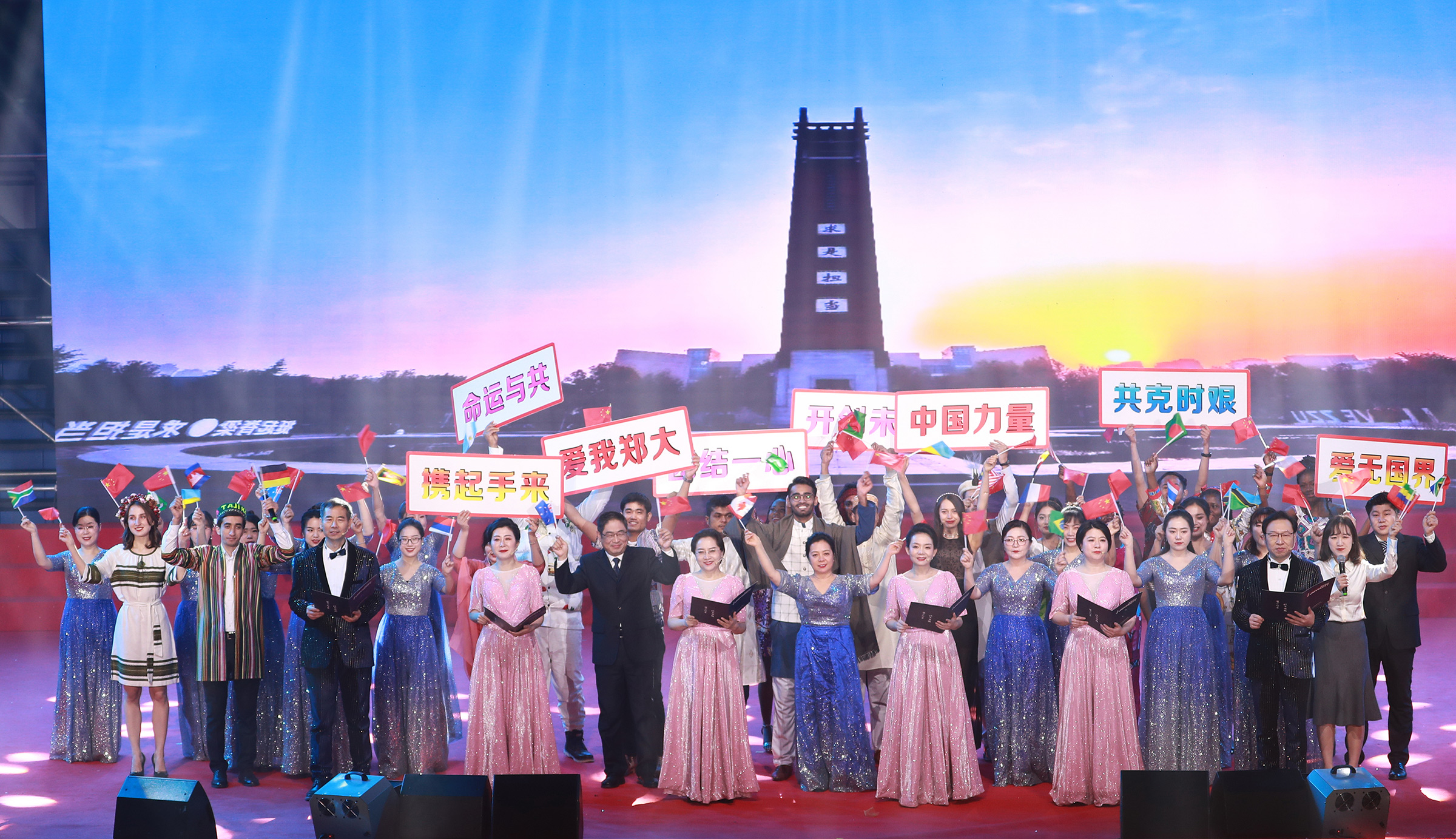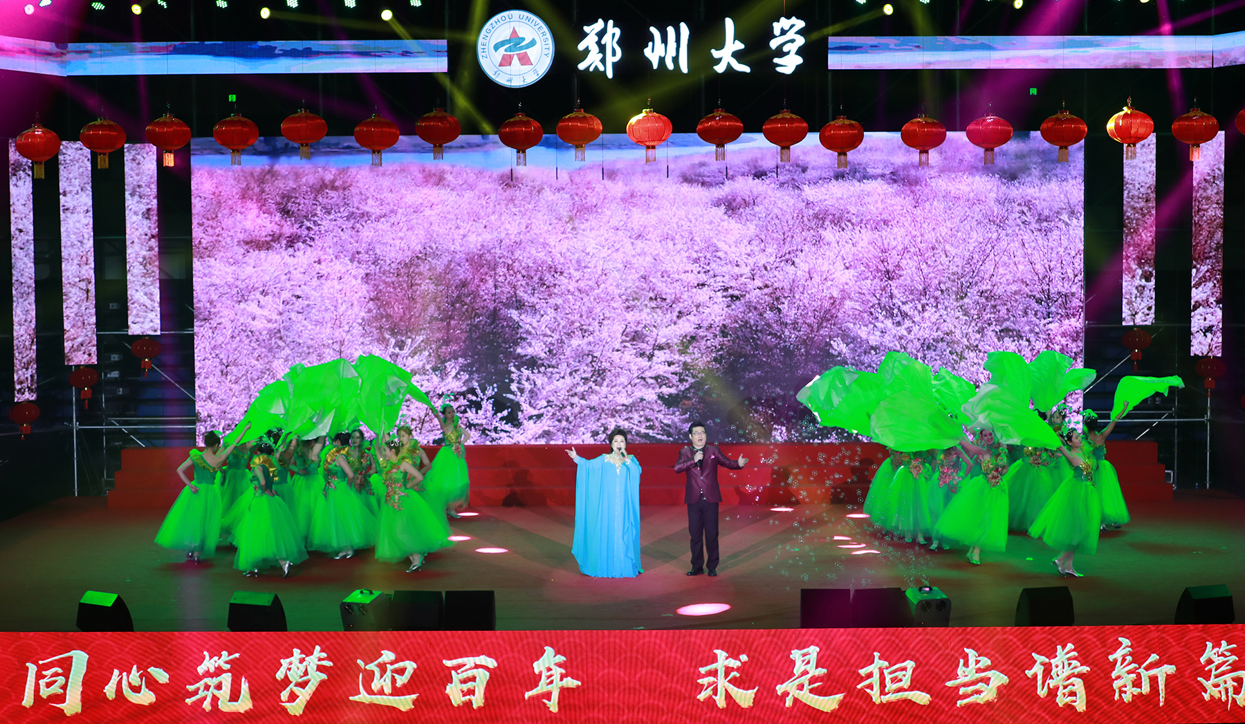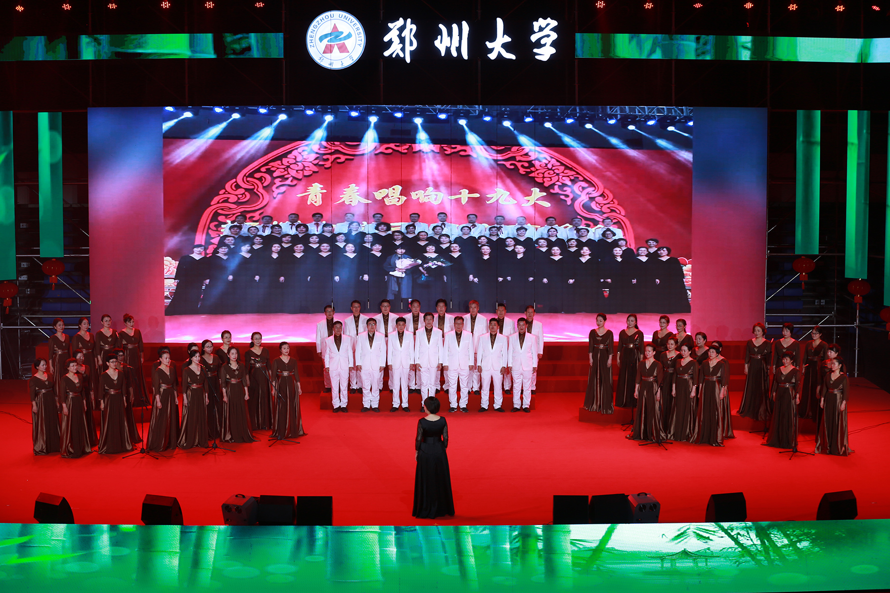 2020年12月31日,由学校精神文明建设指导委员会主办、工会委员会承办的2021年pp电子官方网站教职工庆元旦迎新年文艺汇演在主校区中心体育馆举行。音乐学院舞蹈《四季》拉开晚会序幕,美轮美奂的舞姿演绎出郑大的春夏秋冬;第一附属医院的舞蹈情景剧《生死不离》,生动再现了战疫期间“最美逆行者”为全国人民托起生命方舟的感人故事,现场观众无不感动落泪;国际教育学院带来朗诵《等你归来》,来自世界各地的留学生与郑大师生共克时艰,谱写出一曲人类命运共同体的生动赞歌;第二附属医院的舞蹈《守护》震撼人心,展现了中华民族亿万儿女守望相助、同心战疫的磅礴力量;河南豫剧院副院长贾文龙演唱的著名豫剧片段《吃亏歌》真挚朴实,唱出了广大党员干部人民至上的初心本色;第五附属医院的古典团扇舞《彩云追月》,为嫦娥五号揽月归来喝彩,点燃了为中国航空作出贡献、服务黄河国家战略的郑大人矢志报国、逐梦太空的科研理想;附属中学教师带来一场《盛世京韵》旗袍秀,将国风国韵之美展现得淋漓尽致,以美立德、以美育人;材料科学与工程学院歌伴舞《风光二十年》,讴歌了学校合校20年来的巨大变迁,展现了郑大人拼搏奋进的精神风貌;机关党委职工代表朗诵了由校党委常委、纪委书记许东升创作的诗歌《我是光荣的郑大人》,一流建设的出彩答卷、“求是 担当”的铮铮誓言,自豪与荣光在每一个郑大人心中升腾;药学院和人民武装部激情演绎情景表演《英雄赞歌》,三位抗美援朝老兵登上舞台,激励全校师生学习伟大抗美援朝精神,锤炼意志、勇毅前行;新闻与传播学院集体朗诵《百年礼赞》,带领全校师生重温一个个激荡人心的历史时刻,回望中国共产党波澜壮阔的百年征程,深情献礼建党100周年;图书馆带来舞蹈《中国红》,将火红的灯笼挂满舞台,这一抹红深沉而热烈,表达了郑大人对伟大祖国的深挚祝福;最后,伴随着欢快的歌伴舞《阳光路上》,文艺汇演圆满落幕。线上线下观众收获了满满的喜悦与感动,沉浸在跨年夜的浓厚氛围中。现将现场精彩节目图片奉上,敬请大家欣赏。(魏洪波 陈卓 孙未 刘文立 摄影)
