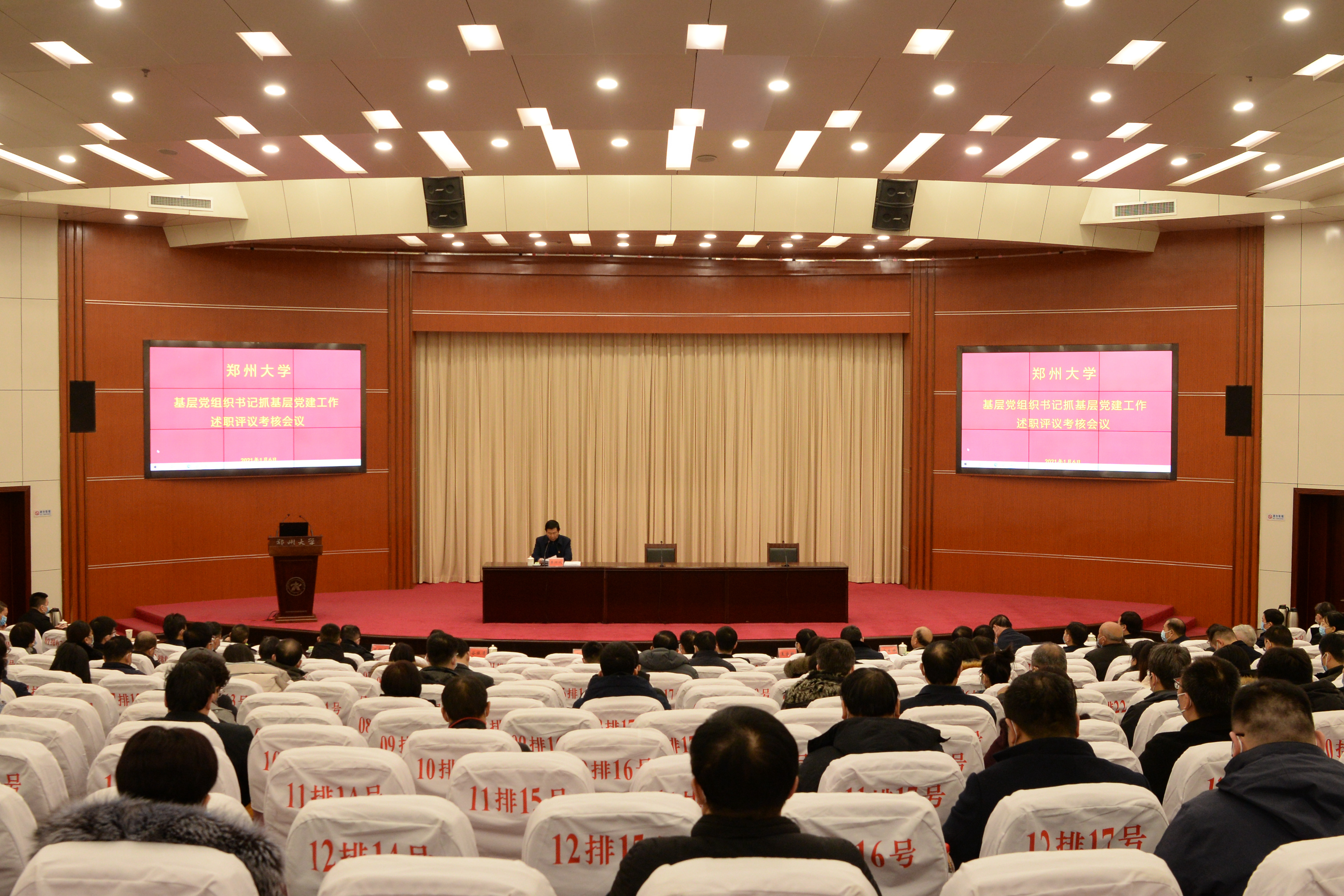 1月6日,pp电子官方网站在主校区召开2020年度基层党组织书记抓党建工作述职评议考核会议。教育部高校党建工作联络员戚世钧,校领导宋争辉、王宗敏、李兴成、谷振清、许东升、刘章锁、吴宏阳出席会议,机关党群部门负责同志,各基层党委(党总支)书记、副书记和部分党支部书记代表共计200余人参加会议。会议由校党委副书记李兴成主持。