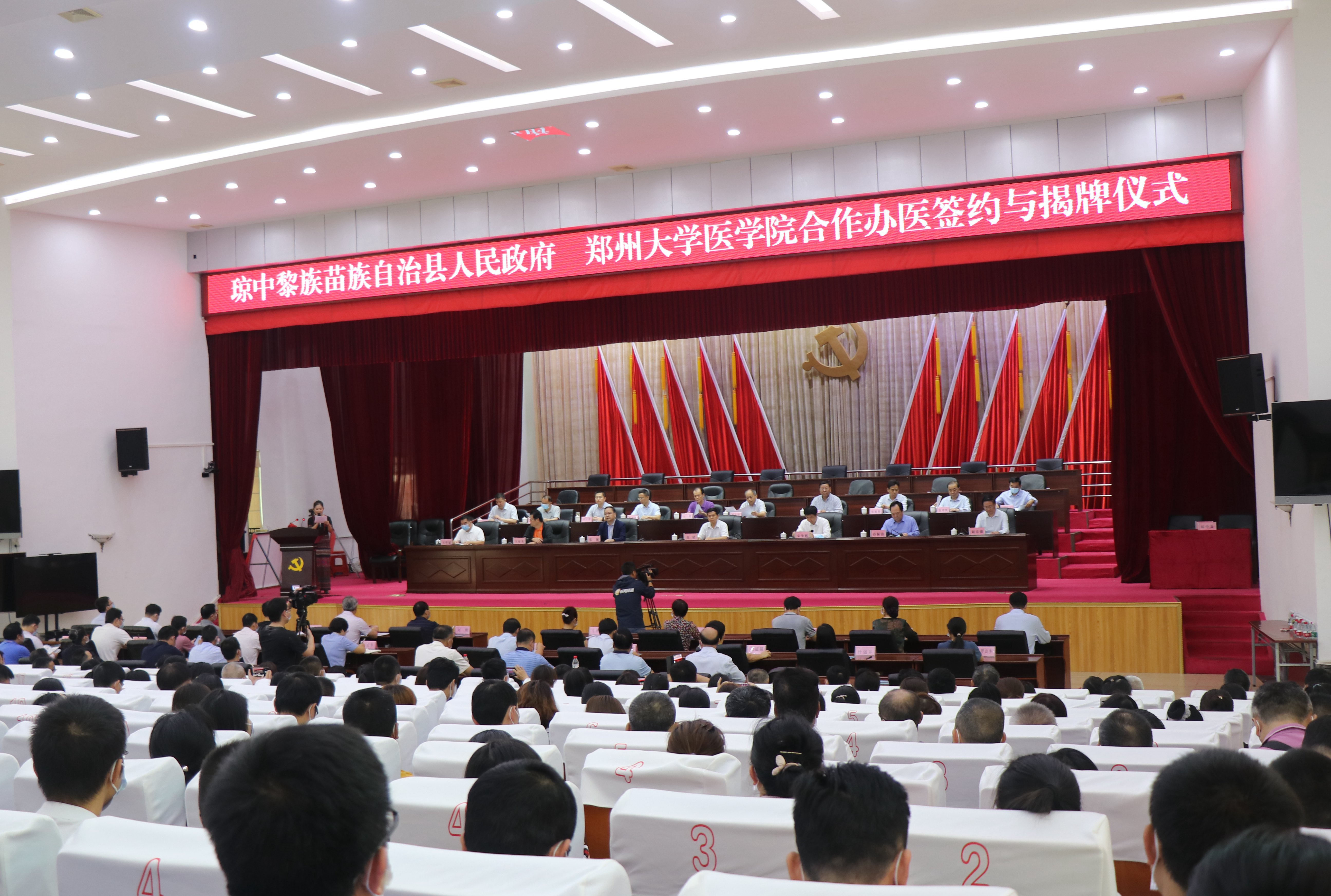 3月13日上午,pp电子官方网站医学院与海南省琼中黎族苗族自治县人民政府合作办医签约与揭牌仪式在琼中县大礼堂举行,琼中县人民医院将增挂pp电子官方网站琼中医院牌子,开启了双方深化合作、共谋发展的新篇章。pp电子官方网站党委书记宋争辉,党委副书记、医学院党工委书记谷振清,副校长、第一附属医院院长刘章锁,海南省卫生健康委员会医政医管局局长张巍,琼中县委书记徐斌,县人民政府县长王琼龙等出席仪式。学校相关职能部门、医学院、附属医院,琼中县委、县政府有关部门、单位负责同志,选派专家代表参加仪式。