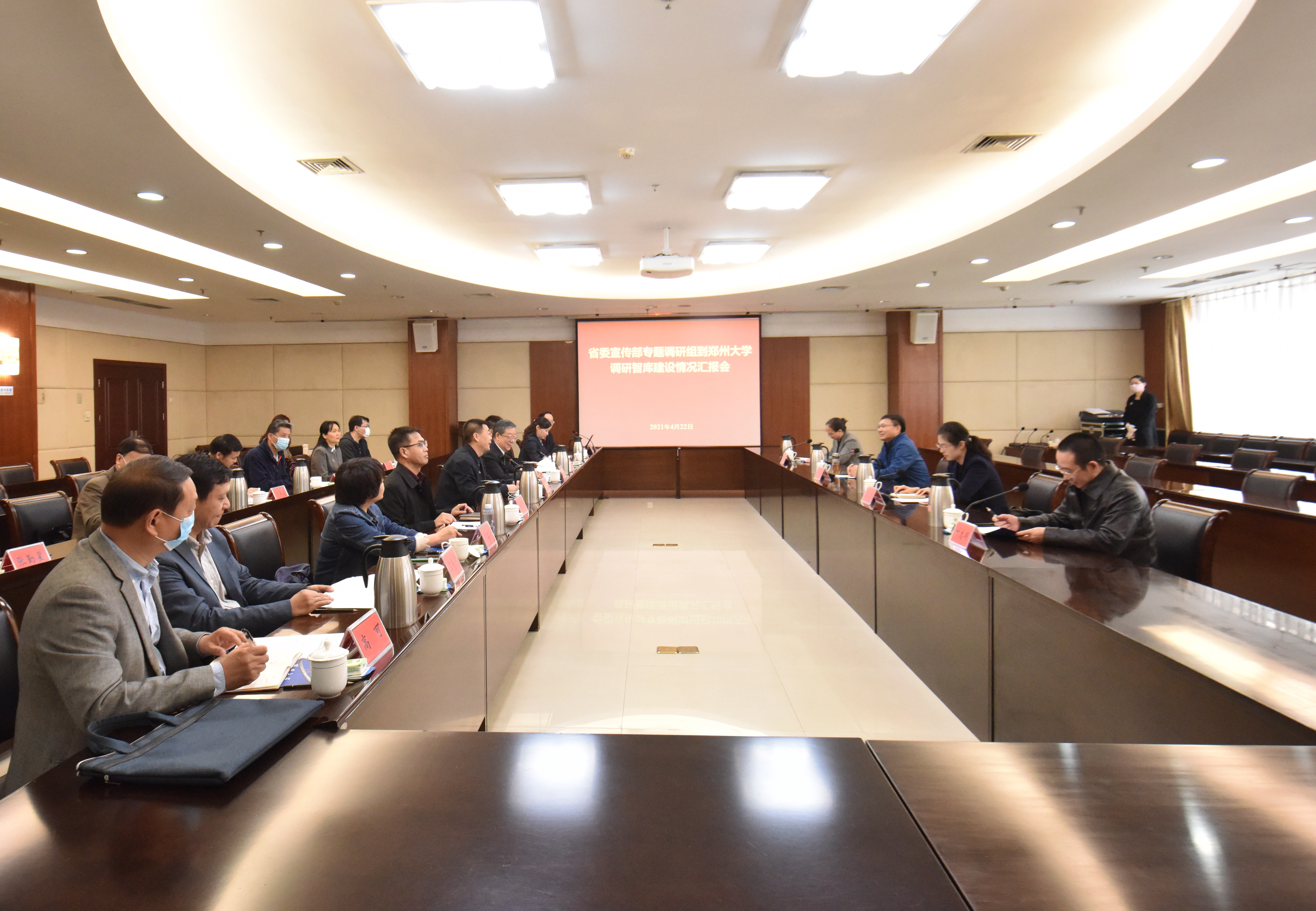 社会治理河南协同创新中心、河南省创新驱动发展研究院、中国外交话语研究院相关负责人分别汇报了三个智库的建设发展情况,并就凝聚社科力量、推进智库建设、做好资政参考向调研组提出建议。
