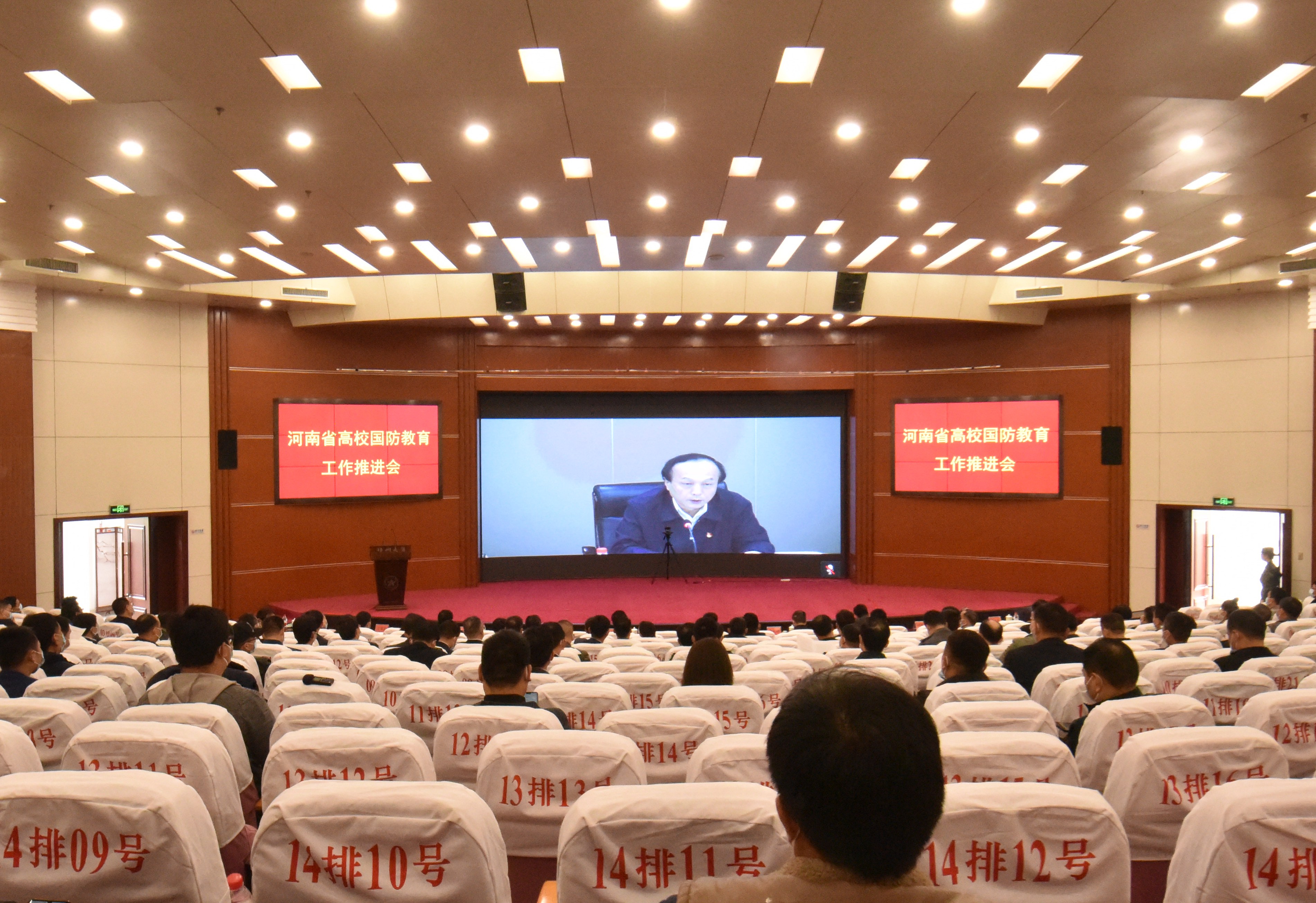 4月22日,河南省高校国防教育工作推进会在省教育厅视频会议室召开。会议深入贯彻学习习近平总书记关于加强全民国防教育的一系列重大决策和指示,突出抓好高校国防教育主阵地,稳步推进国防教育模范高校创建工作,教育引导广大青年学生牢固树立国防意识、增强国防素养。省军区政委徐元鸿少将、副省长霍金花出席会议并讲话,省军区副政委兼纪委书记刘金来少将主持会议。pp电子官方网站在主校区设立分会场,郑州市副市长马义忠、郑州警备区副司令员许建华、校党委副书记吴宏阳出席,郑州市国防教育成员单位负责领导、驻郑各高校校领导及武装部部长、各县(市、区)人武部主官共计190余人参加会议。