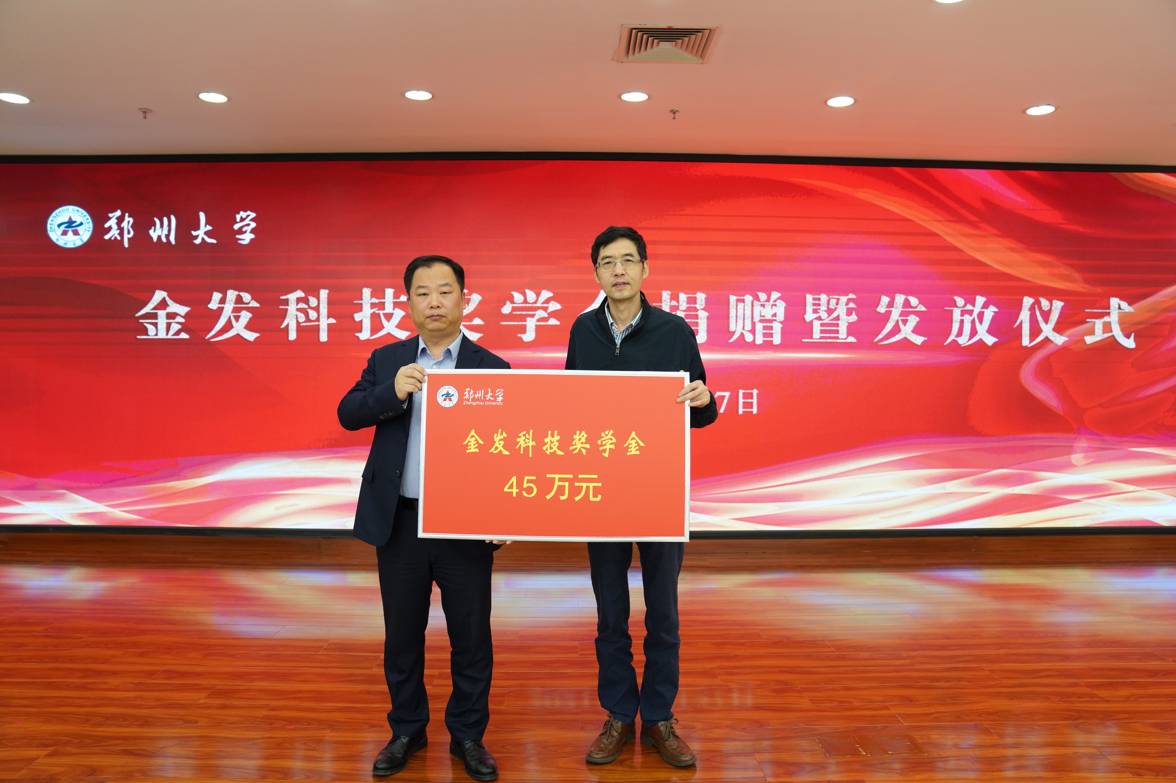 徐东升在仪式上致辞。他对黄险波一行的到来表示欢迎,并简要介绍了学校的发展情况以及基金会工作所取得的成效。他表示,金发科技的持续捐赠,给学校一流大学建设及人才培养增添了不竭动力,学校也一定会管理好、使用好捐赠资金,希望同学们努力学习,报效祖国,无论身在何处,都要心存大爱、传播大爱,回馈社会。