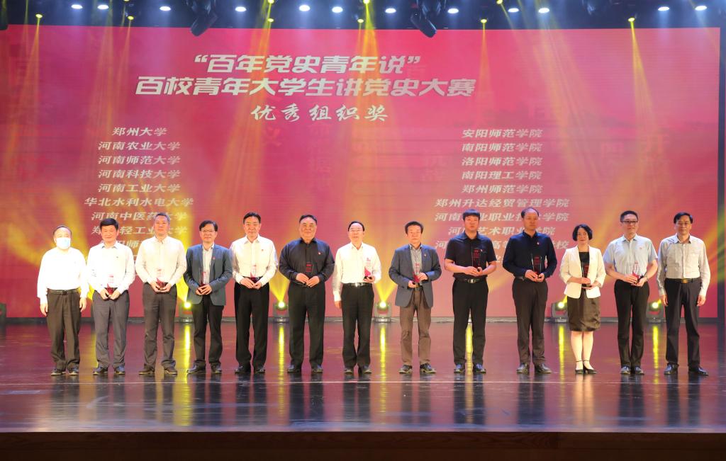 近日,由中共河南省委高校工委、河南省教育厅、共青团河南省委、河南广播电视台联合举办的“‘百年党史青年说’——百校大学生讲党史大赛颁奖典礼暨汇报展演活动”在郑州举行。pp电子官方网站荣获优秀组织奖,学校选送的由大学生艺术中心语言与表演艺术团表演的《糖丸》、信息管理学院的《薪火相传,筑梦未来》、教育学院的《大山里的女儿》以及政治与公共管理学院的《学习中共党史,凝聚巾帼力量》等节目获得三等奖。