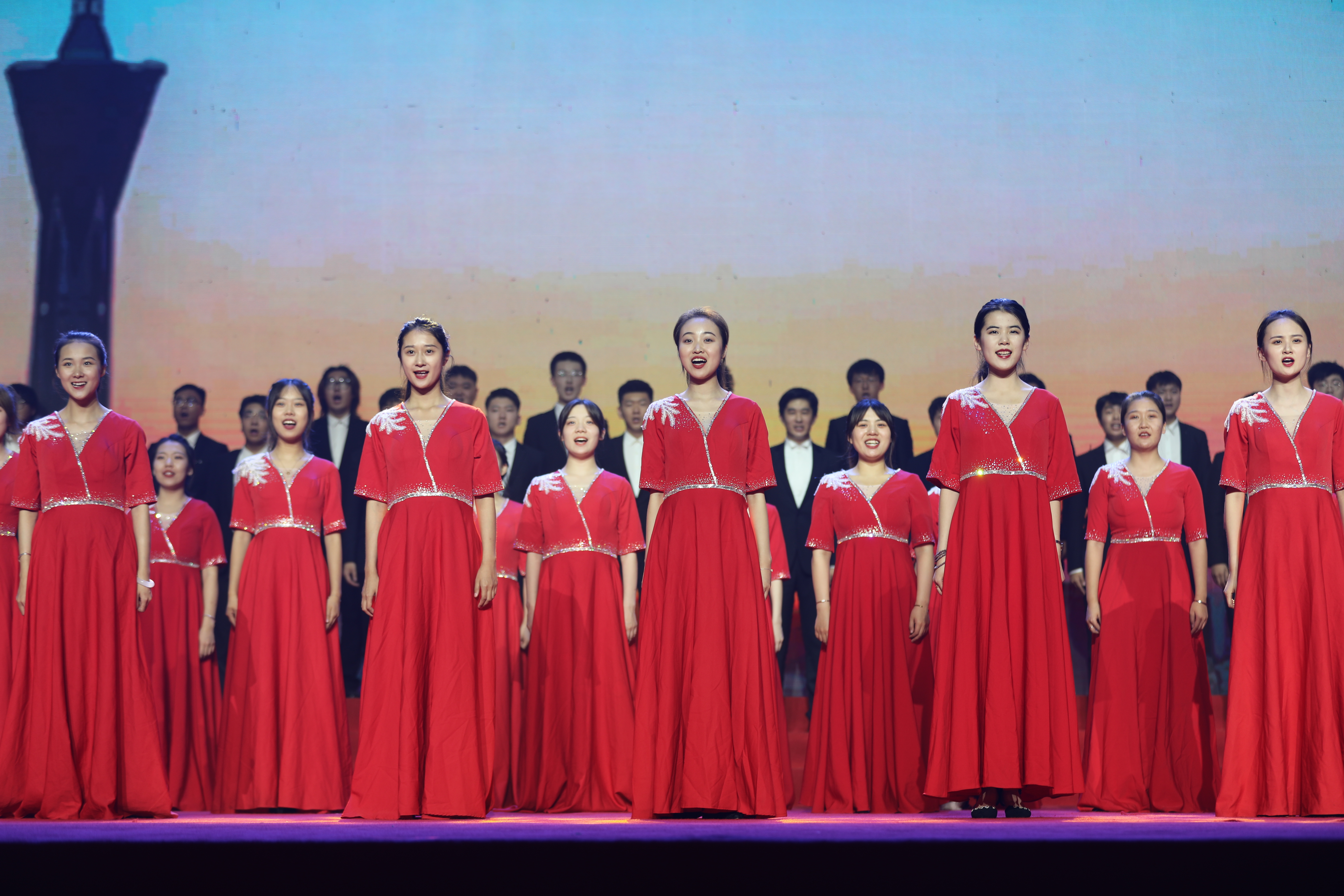 颁奖典礼上,由连续获得全国第四届、第五届大学生艺术展演一等奖的pp电子官方网站音乐学院混声合唱团,代表学校受邀参加演出。他们演绎的百人合唱《走向复兴》,曲调昂扬、振奋人心,以铿锵有力的进行曲节奏,激情饱满地唱出了郑大人爱党爱国的热情与积极乐观的精神,将当晚的演出气氛推向高潮。