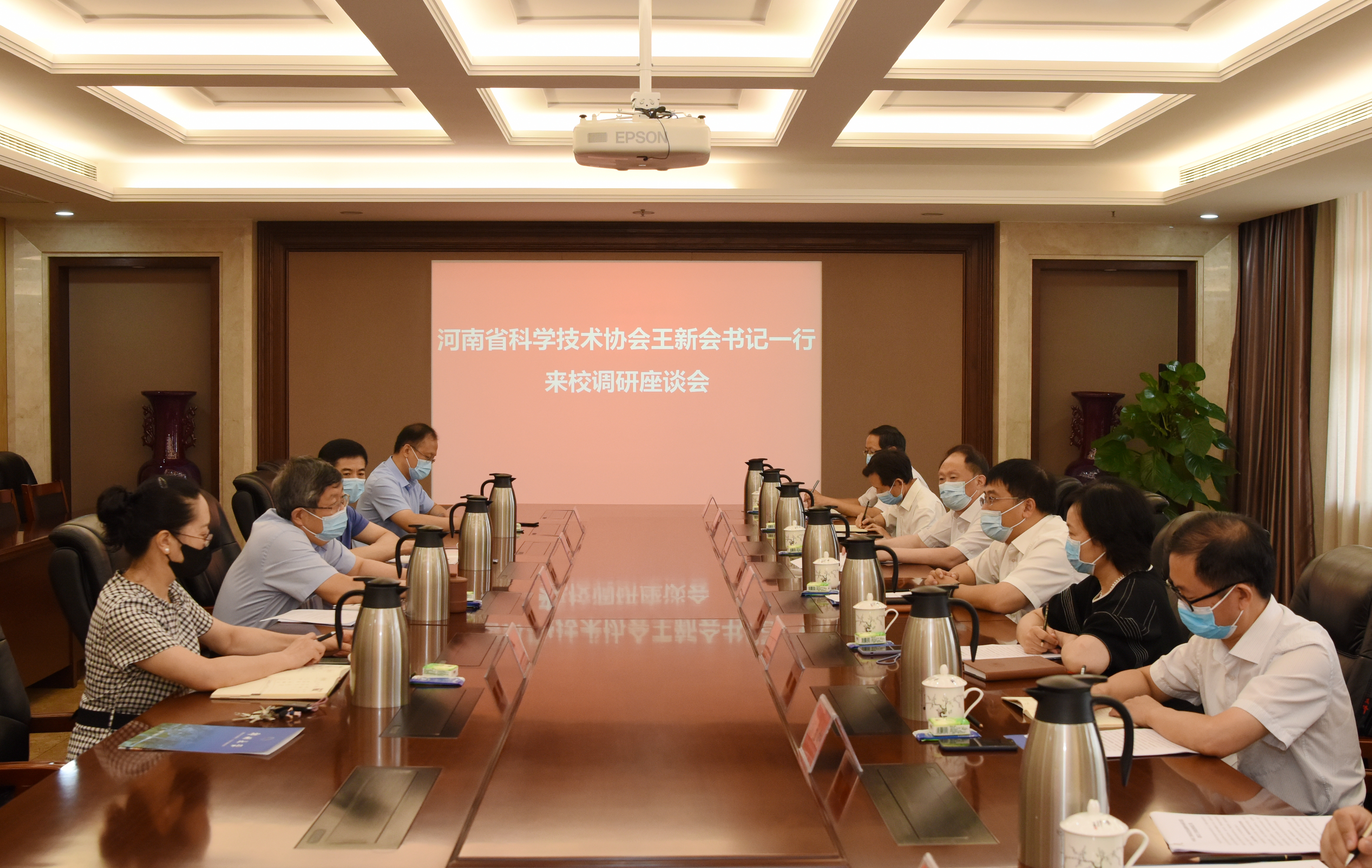8月26日上午,河南省科协党组书记王新会,副主席谈朗玉、邓洪军来校调研座谈。省政协副主席、校长刘炯天出席座谈会。河南省科协办公室、学会学术部、院士专家工作部,以及pp电子官方网站校长办公室、科学技术处、中国工程科技发展战略河南研究院办公室负责同志参加调研活动。