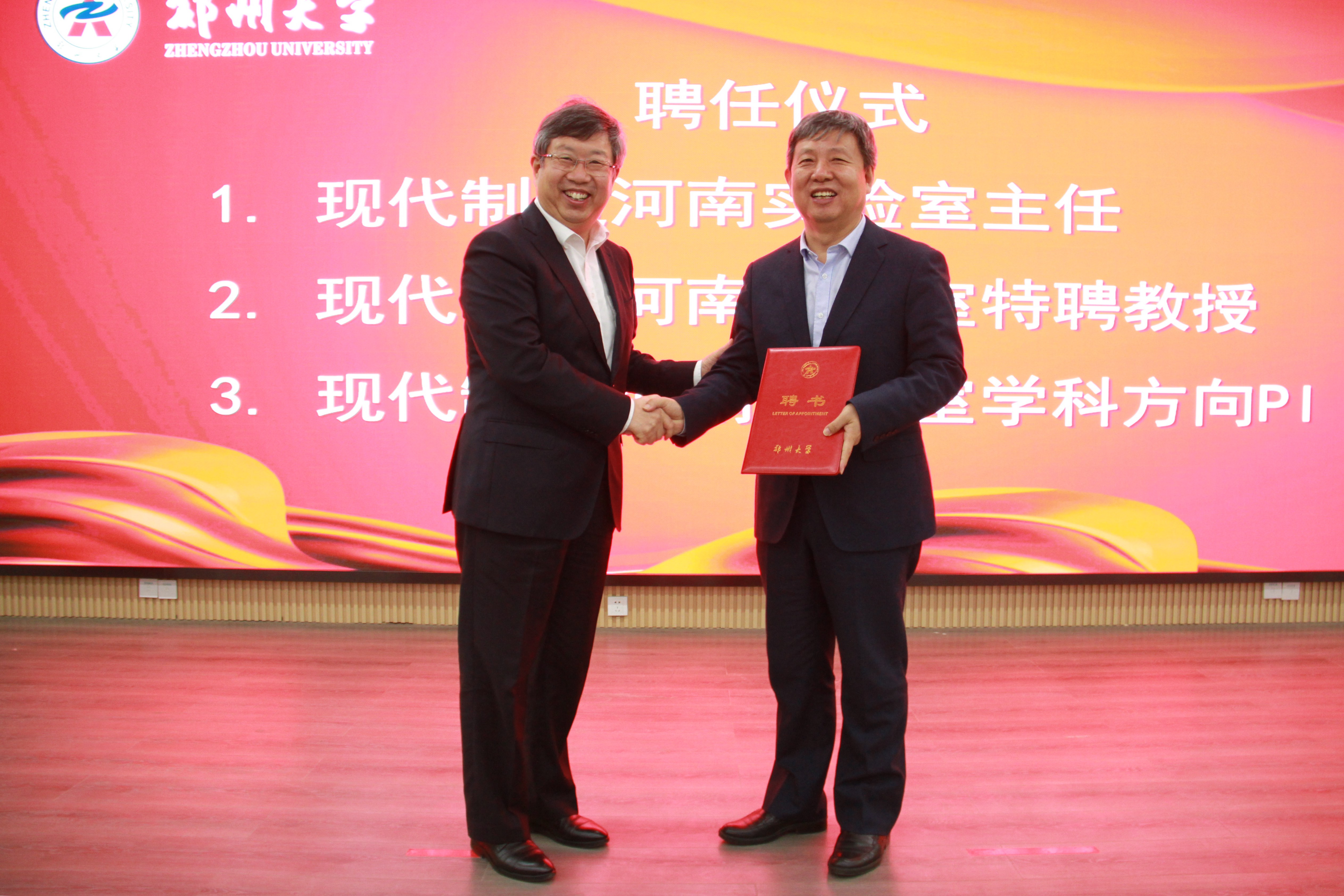 仪式上,刘炯天为樊会涛颁发聘书,聘任其为pp电子官方网站洛阳校区校长、现代制造河南实验室主任,并代表学校,分别与洛阳中信重工机械股份有限公司、中钢集团洛阳耐火材料研究院有限公司、洛阳LYC轴承有限公司、中国一拖集团有限公司、中国洛阳浮法玻璃集团有限责任公司签订了参建国家重点实验室协议。