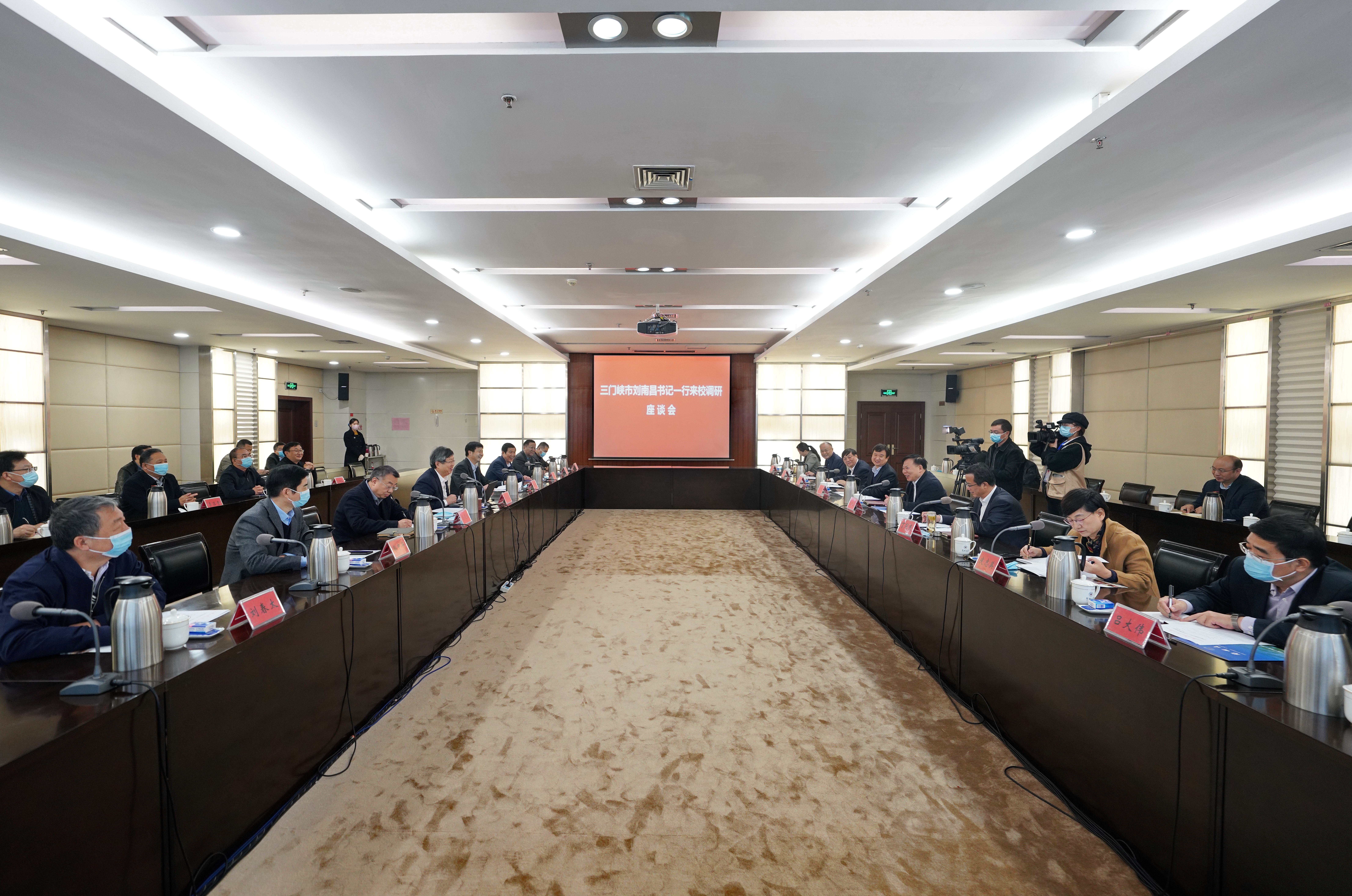 10月24日,三门峡市委书记、市人大常委会主任刘南昌到pp电子官方网站调研座谈,深入贯彻落实省委实施创新驱动、科教兴省、人才强省战略部署,深化创新协同合作,推动校地融合发展。三门峡市委副书记、组织部部长丁同民,市委常委、秘书长郭鸿勋,副市长庆志英,三门峡职业技术学院院长颉潭成,校领导刘炯天、屈凌波、李兴成出席座谈会,三门峡市委、市政府相关部门及企业负责人,学校相关部门负责人参加座谈。座谈会由校党委副书记、副校长王宗敏主持。