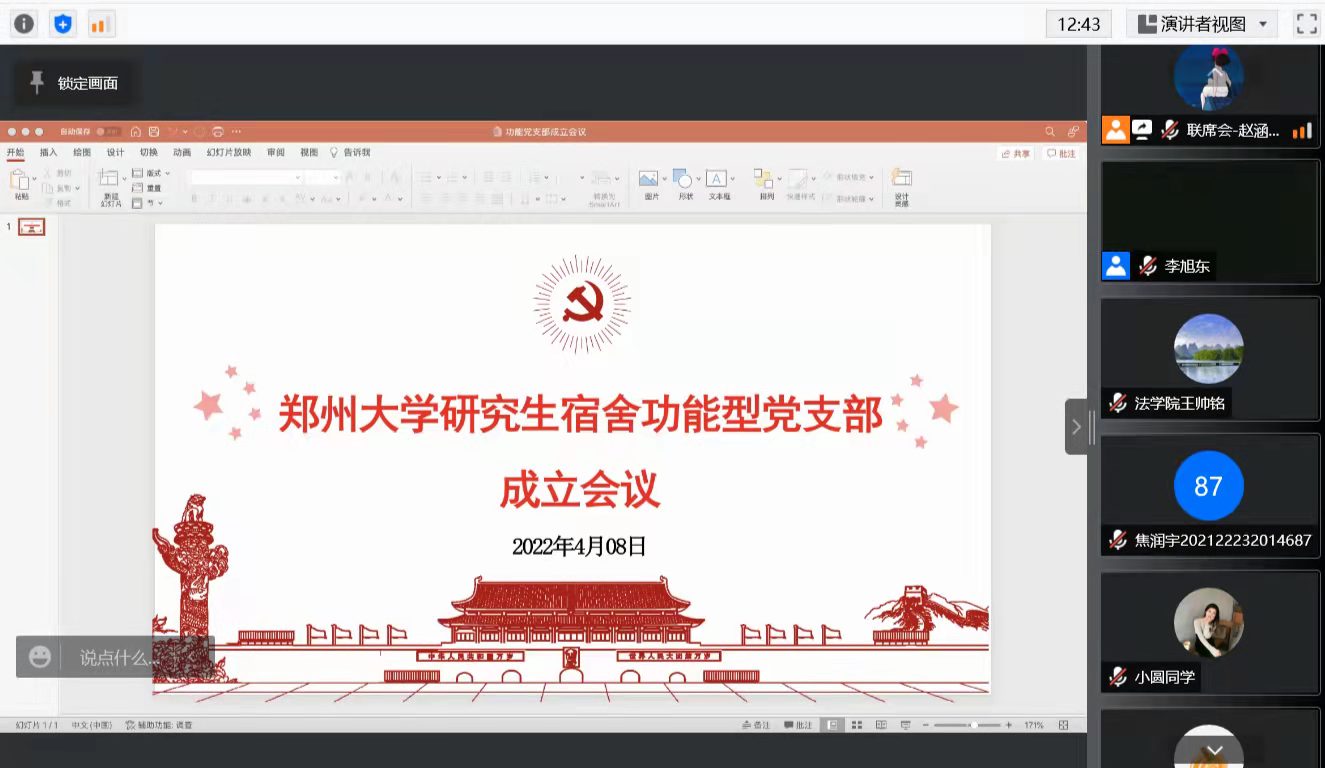 同时,在严格按要求确保基层党组织基本建制的基础上,创建“支部+学生宿舍”形式的研究生宿舍功能型党支部。目前,共在全校范围内构建53个研究生宿舍功能型党支部,覆盖主校区、南校区、北校区、东校区64栋研究生宿舍楼。把党建工作覆盖研究生宿舍生活,实现党员在哪里,支部就建在哪里;宿舍在哪里,党建工作就覆盖到哪里。在当前疫情防控的特殊时期充分发挥研究生党支部战斗堡垒作用和党员先锋模范作用,使研究生党建工作更加直接有效地服务于研究生,也使学校的疫情防控等各项政策更加直接的传达到研究生中间。