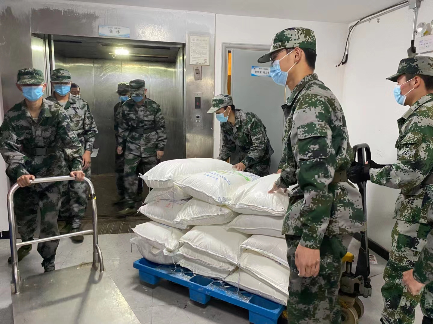 国旗护卫队员搬运物资