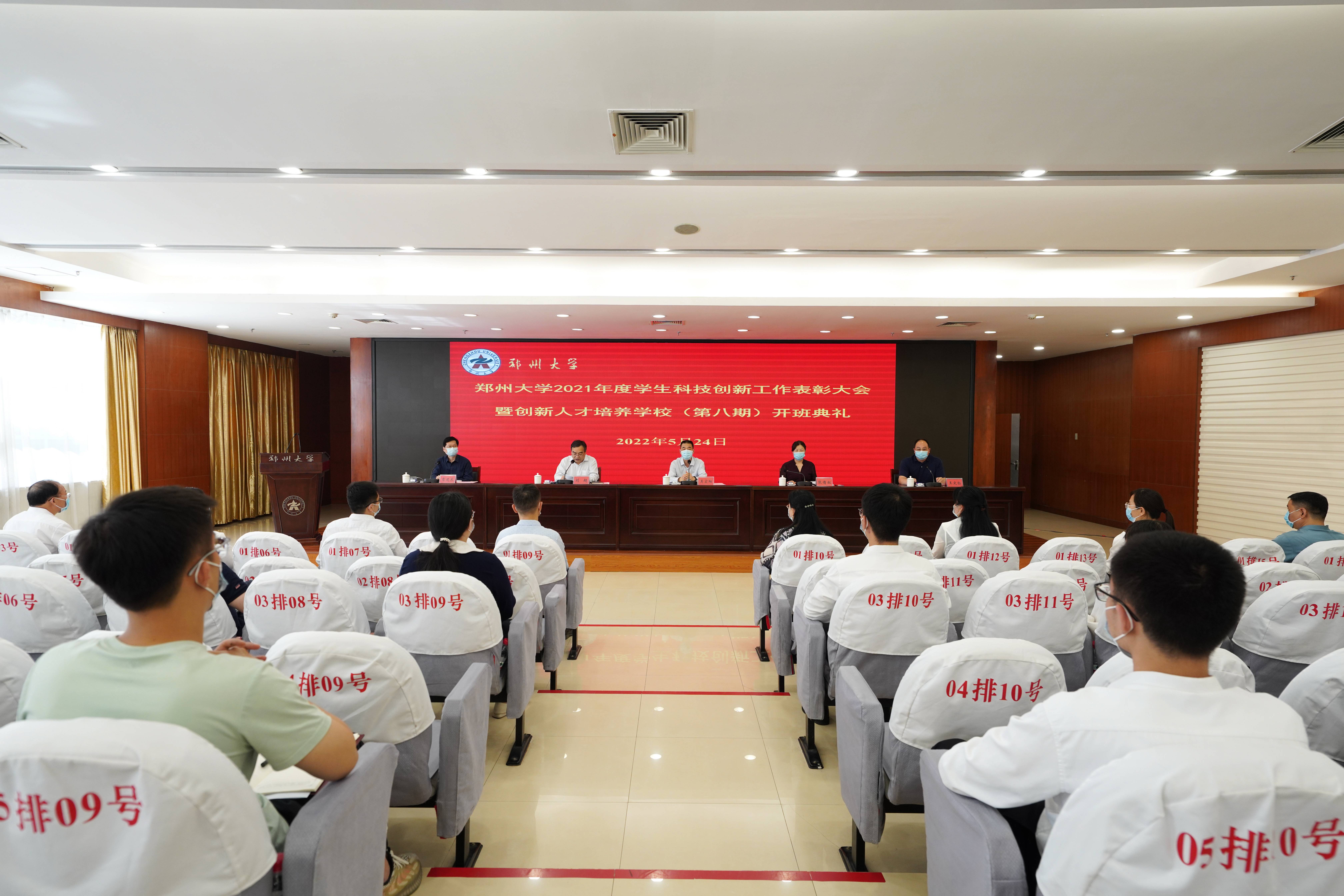 5月24日,pp电子官方网站2021年度本科生科技创新工作表彰大会及创新人才培养学校(第八期)开班典礼在主校区综合管理中心第二报告厅举行。校党委副书记吴宏阳、副校长张倩红出席,党委学生工作部、学生处及院(系)负责同志、学院分管学生工作副书记、辅导员、获奖学生代表以及第八期创新人才培养学校学员以线上线下相结合的方式参会。