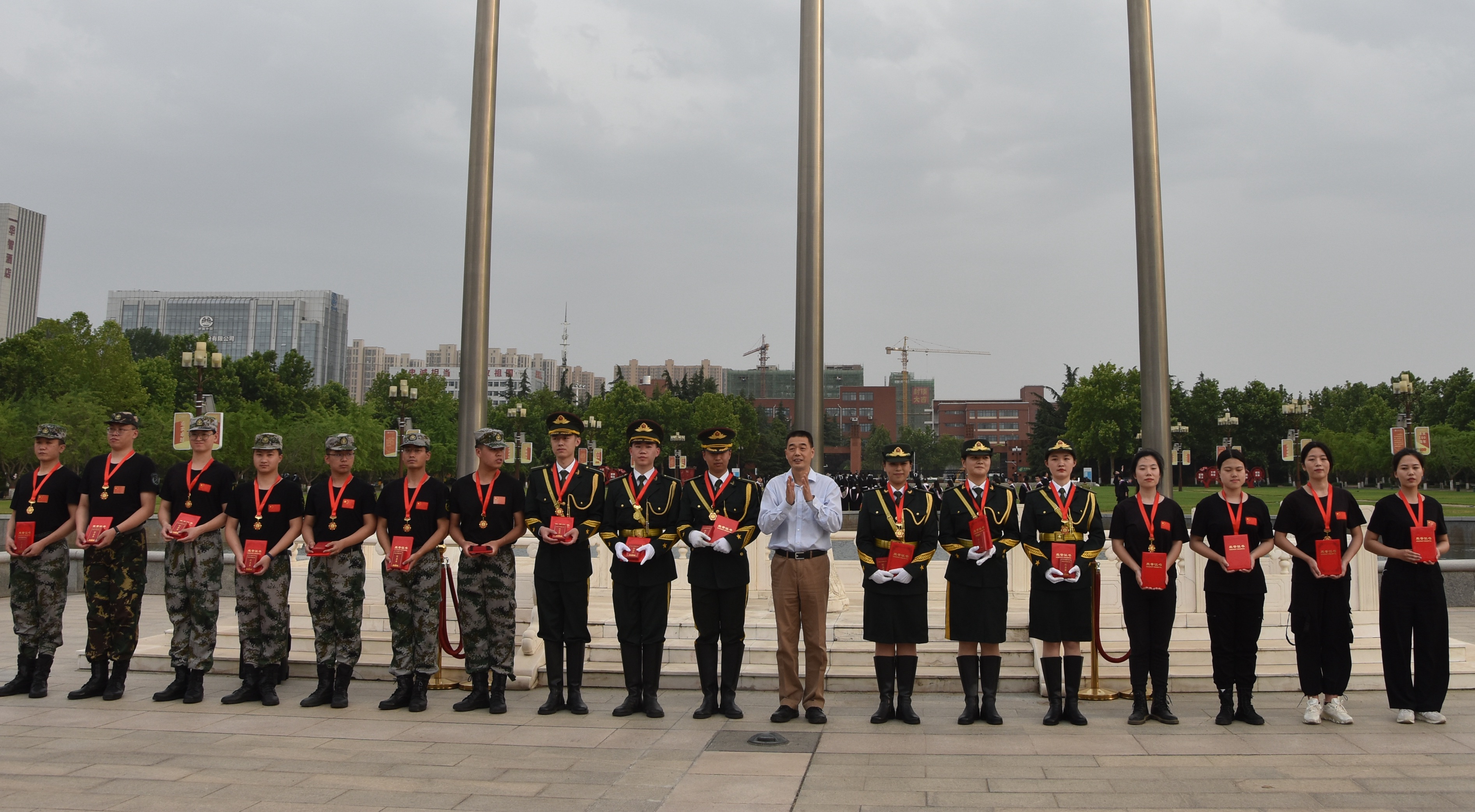 为传承国旗精神,深化爱国主义教育,营造“青春心向党,逐梦新征程”的毕业离校育人氛围,引导广大学生坚定理想信念、提升爱国荣校情怀,5月29日,pp电子官方网站举行国旗护卫队2018级队员退队仪式。校党委副书记吴宏阳出席,人民武装部、学生处负责同志及国旗护卫队全体队员以线上线下相结合的方式参加仪式。