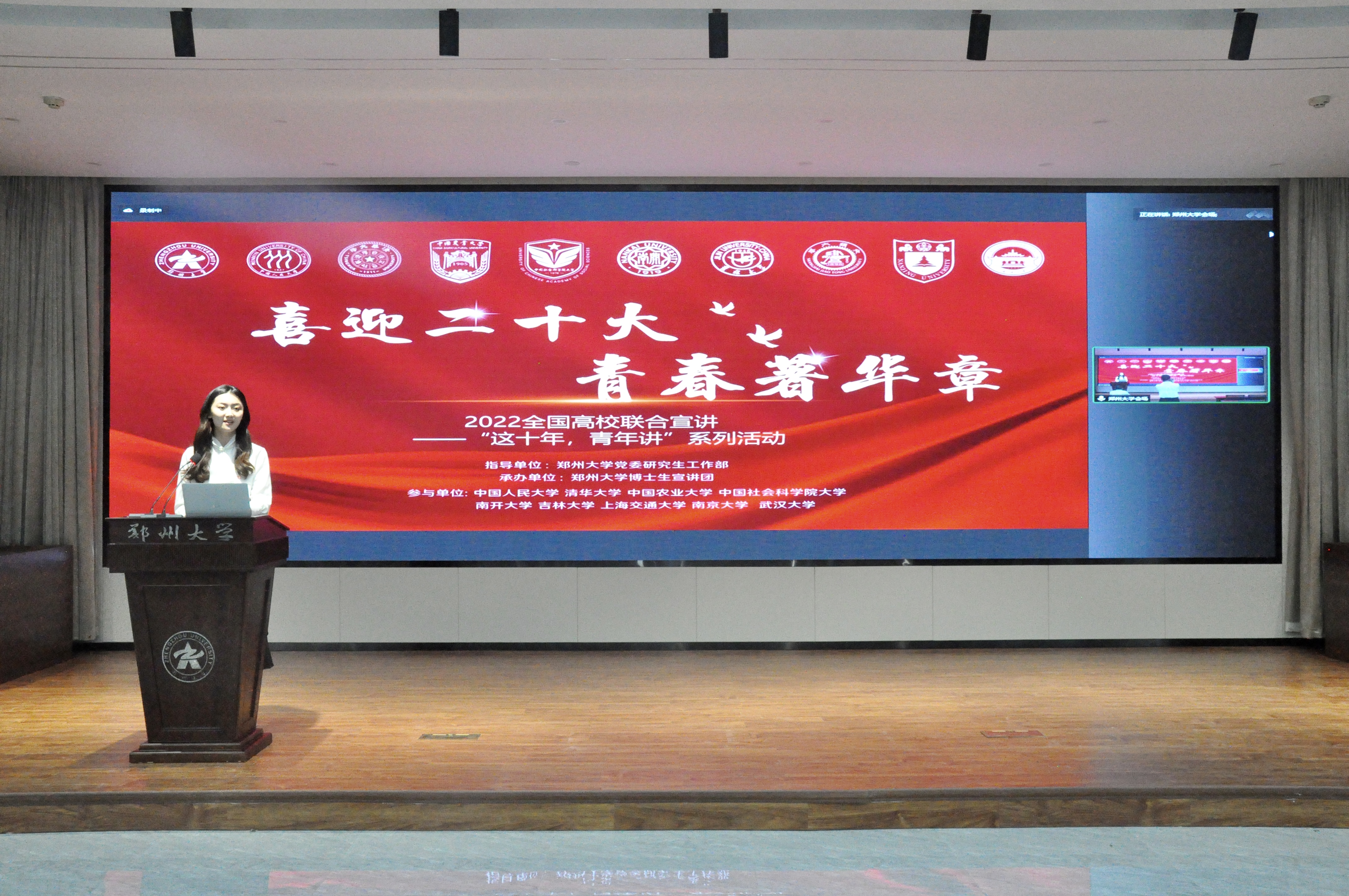 为深入学习习近平新时代中国特色社会主义思想,全面回顾新时代伟大成就,凝聚新征程青春伟力,迎接党的二十大胜利召开,5月30日,pp电子官方网站博士生宣讲团联合清华大学、中国人民大学、中国农业大学、中国社会科学院大学、南开大学、吉林大学、上海交通大学、南京大学、武汉大学等高校理论宣讲团,以“喜迎二十大,青春著华章”为主题开展2022年全国高校联合宣讲——“这十年,青年讲”系列活动。校党委副书记吴宏阳出席,党委研究生工作部负责同志、研究生党支部书记代表、博士生宣讲团成员现场参加宣讲活动,学校全体研究生、全国联合宣讲高校研究生在线参加宣讲。