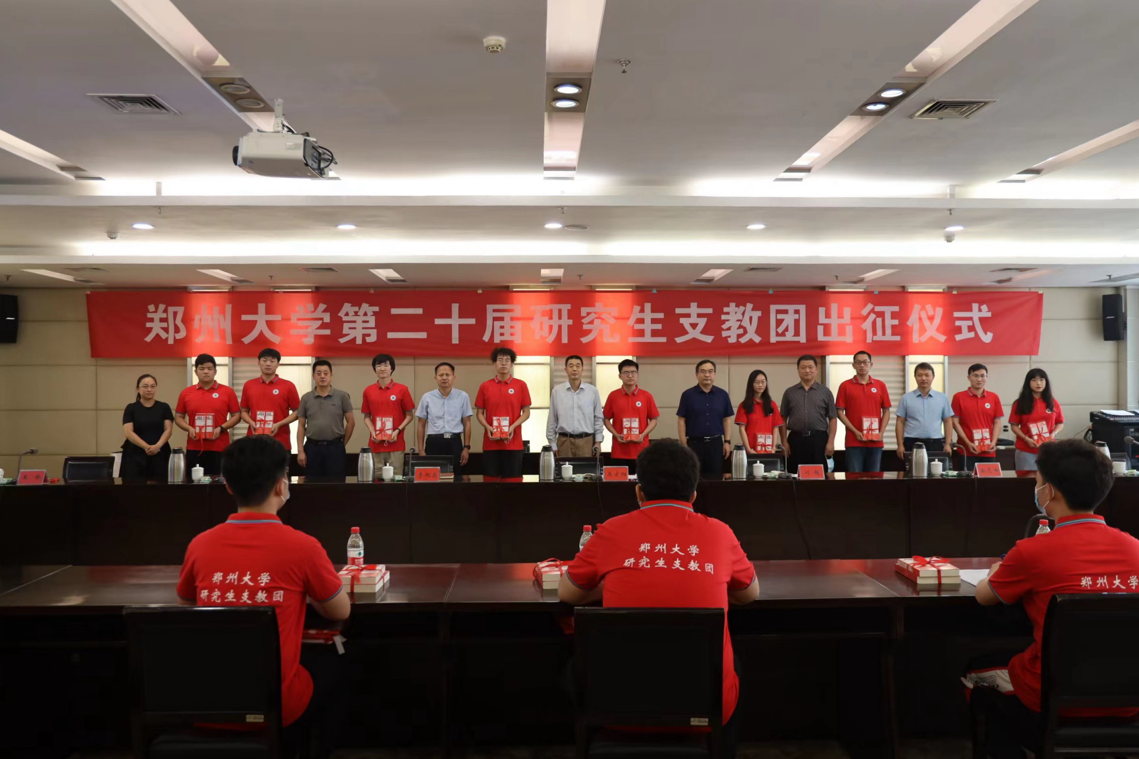 会上,与会领导老师分别为支教团内蒙古分队、西藏分队和广西分队授旗,并向全体队员赠送《中国共青团史稿》《红星照耀中国》等书籍。各支教分队队长分别发言,一致表示将牢记初心使命,践行“奉献、友爱、互助、进步”的志愿精神,全身心投入神圣的支教事业,在祖国的大西部传播知识与希望,让青春在西部大发展中焕发绚丽光彩。