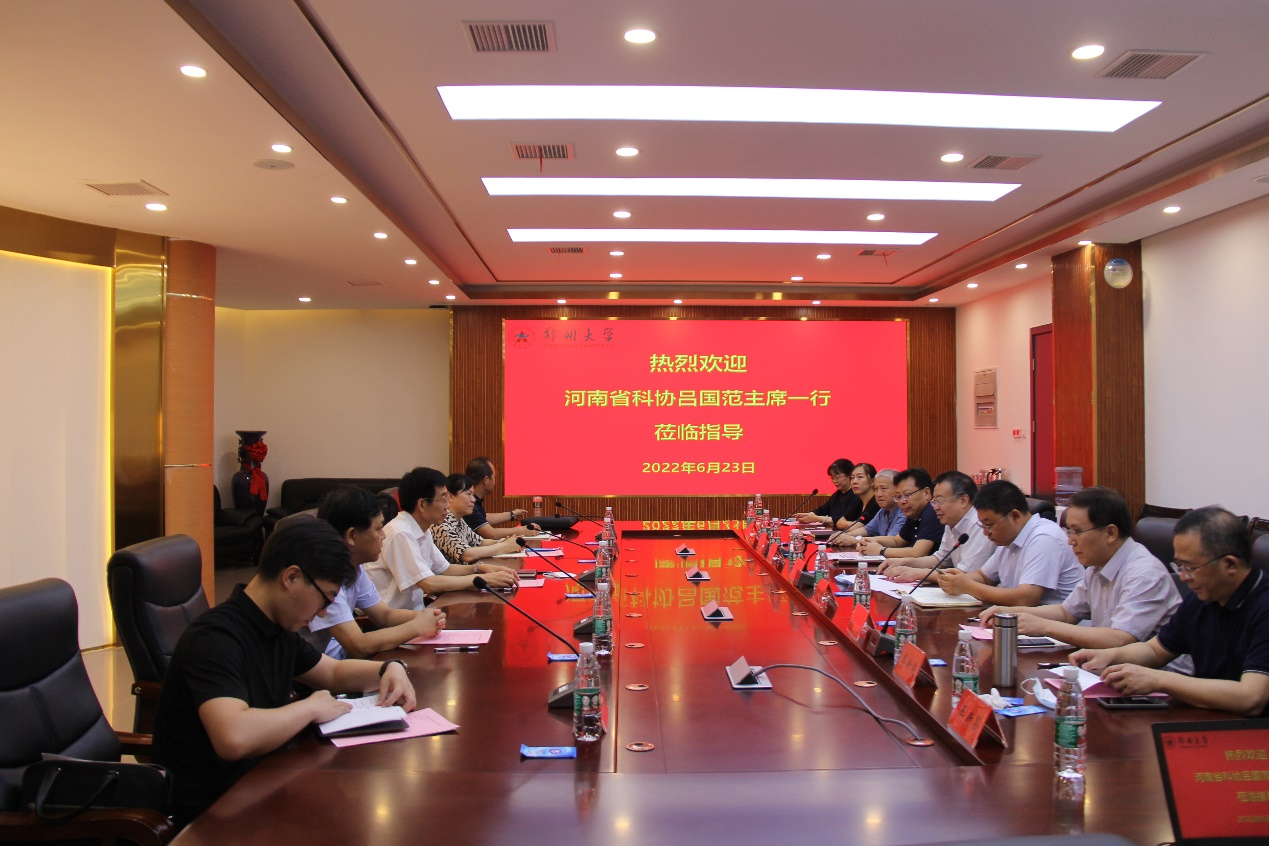 6月23日上午,河南省科协主席吕国范、副主席王继芬一行到pp电子官方网站调研,了解中国工程科技发展战略河南研究院运行情况和相关全省学会工作情况,并走访看望学会干部和一线科技工作者。河南省政协副主席、pp电子官方网站党委书记刘炯天院士会见了吕国范一行。
