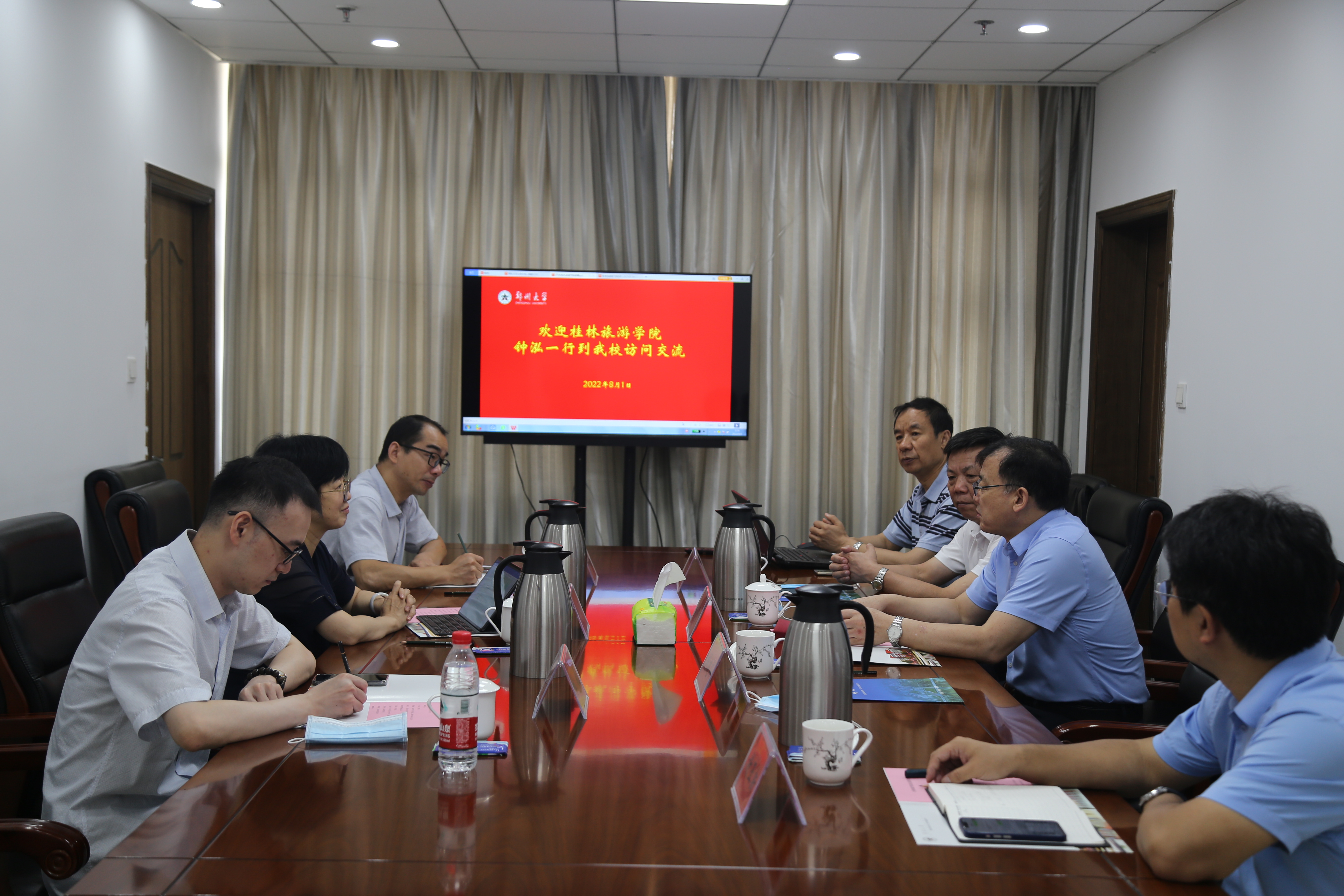 8月1日,桂林旅游学院副校长钟泓一行三人来校访问。校党委常委、副校长韩国河会见来访客人,国际交流与合作处、国际学院负责同志参加会见。