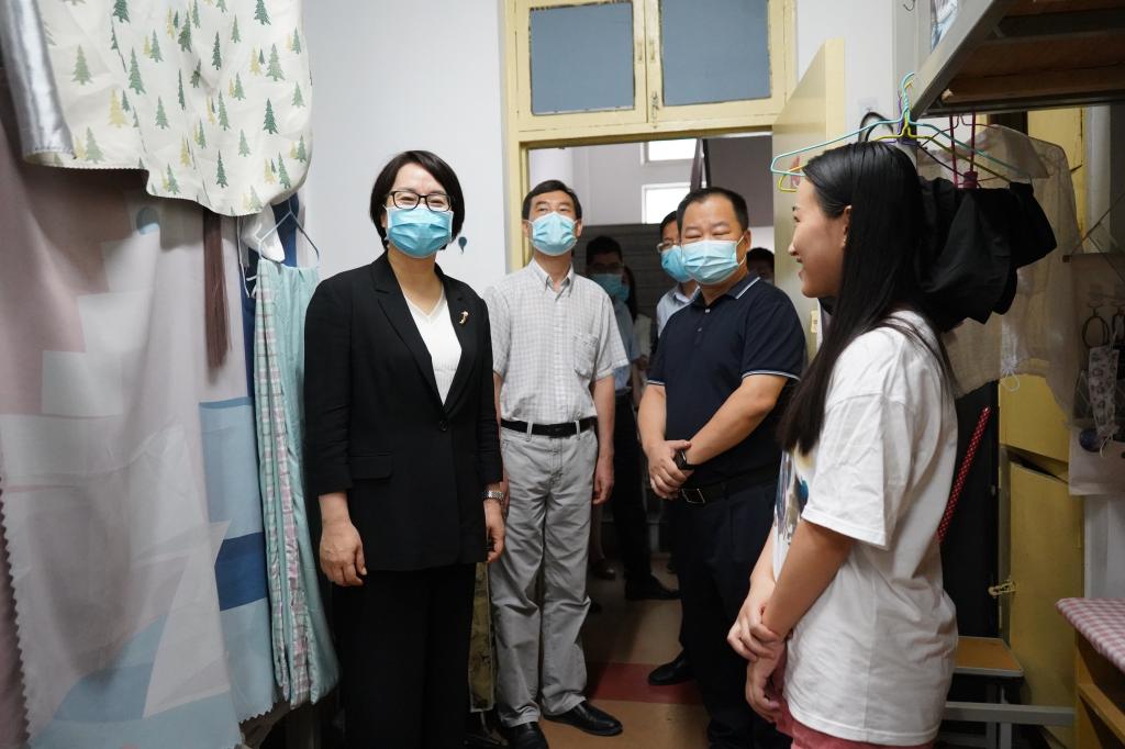 在主校区北校园,李蓬走访了网络空间安全学院、河南先进技术研究院、橡塑模具国家工程研究中心,详细了解几个单位学科优势特色、科研团队平台、成果产出转化、社会服务能力等方面的情况。在听取河南先进技术研究院关于生物医药领域合作情况的汇报后,她强调要明确对标单位,以目标引领发展,要重视人才引育,努力营造引人用人的良好氛围。随后,李蓬来到青年教师公寓楼改造工地查看工程进度,并到学生宿舍5号楼看望慰问留校学生,她要求加快公寓楼改造进度,尽快投入使用,以缓解学生宿舍短缺的问题,同时要做好暑期留校学生的服务保障,使学生安心开展学习科研活动。