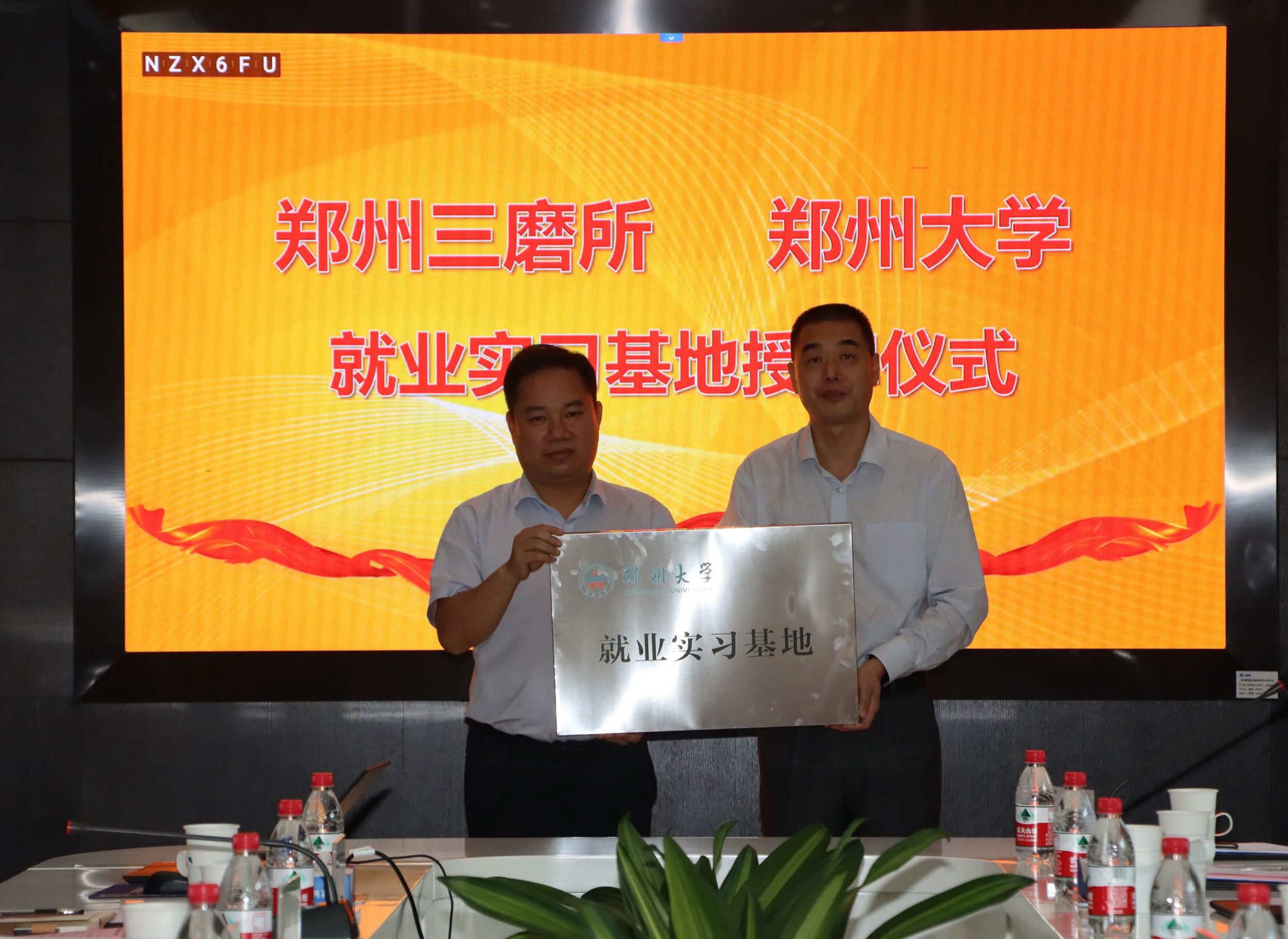 吴宏阳向郑州磨料磨具磨削研究所有限公司授“pp电子官方网站大学生就业实习基地”牌。