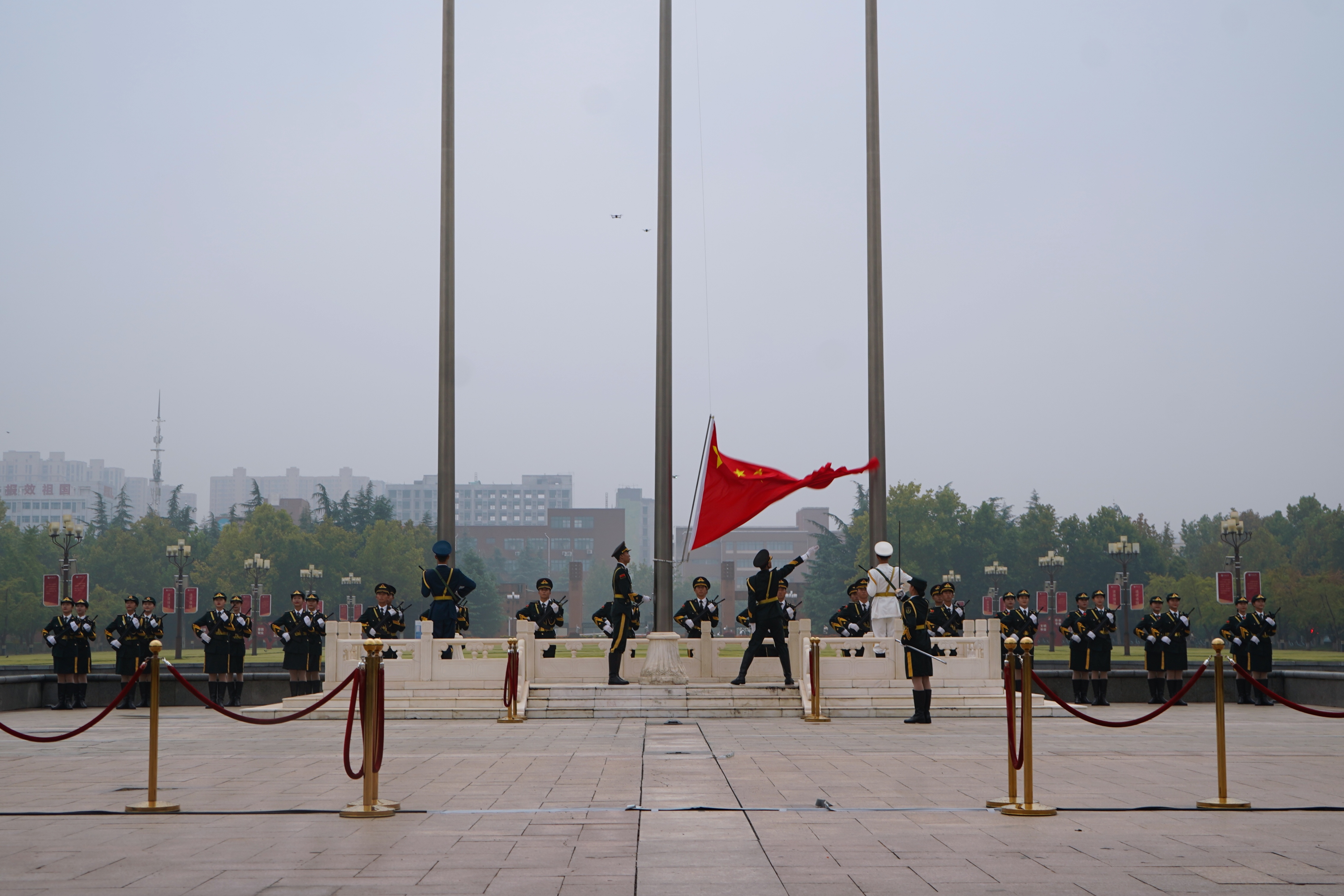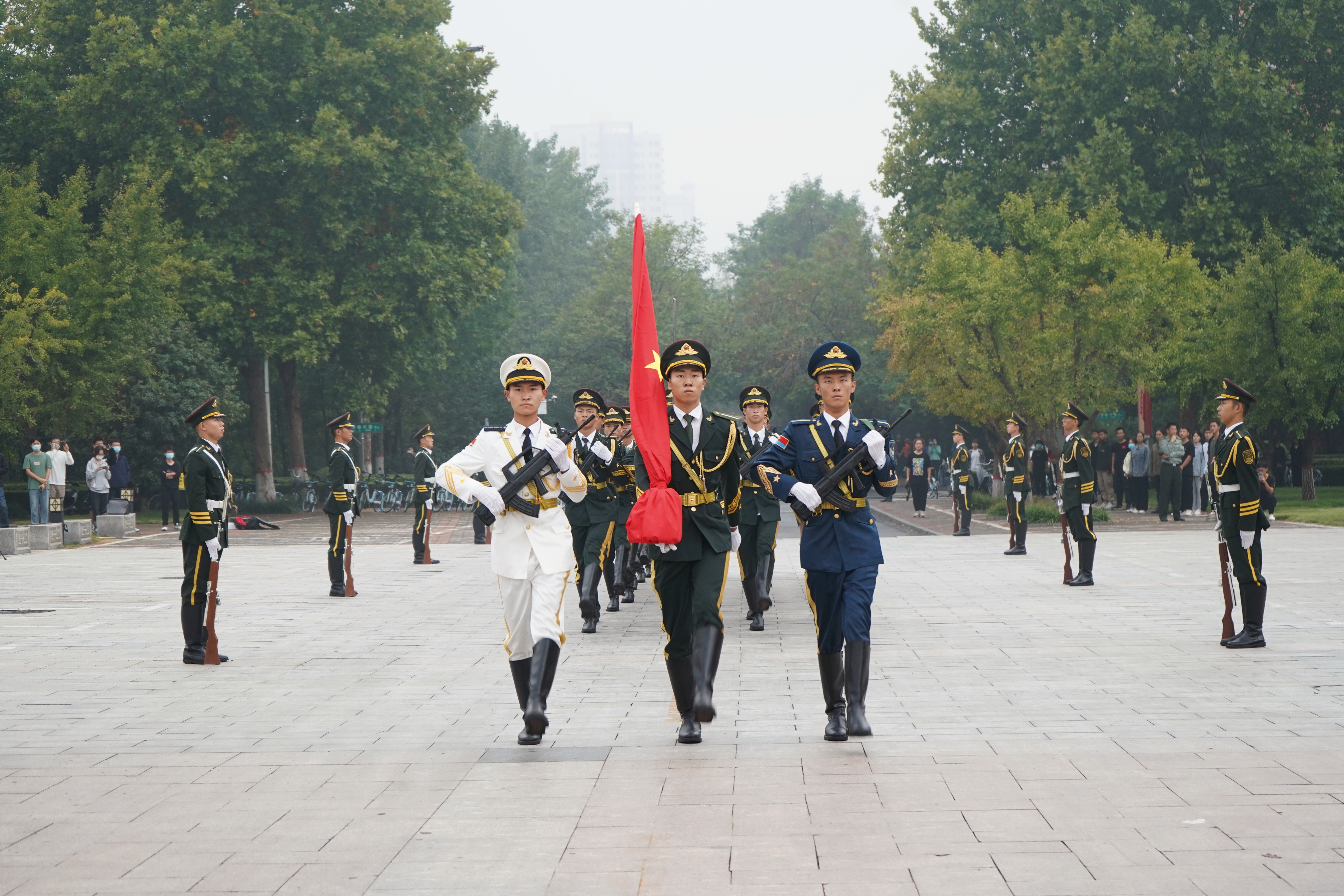 升旗仪式的成功举行,激发了广大师生的爱国情感和使命意识,引领青年学子求是担当,砥砺前行,追求卓越,表达了全体郑大人对伟大祖国的美好祝愿。全体郑大师生将以更加昂扬的姿态和饱满的热情,投身民族复兴的磅礴伟业、为国奋斗的伟大实践,奋力推进世界一流大学建设,加快建设国家创新高地,以优异成绩迎接党的二十大胜利召开,为实现中华民族伟大复兴的中国梦贡献青春力量。(杨俊锋 摄影)