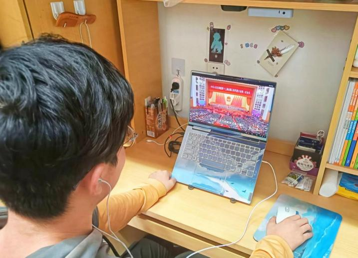 学生在寝室观看《领航》