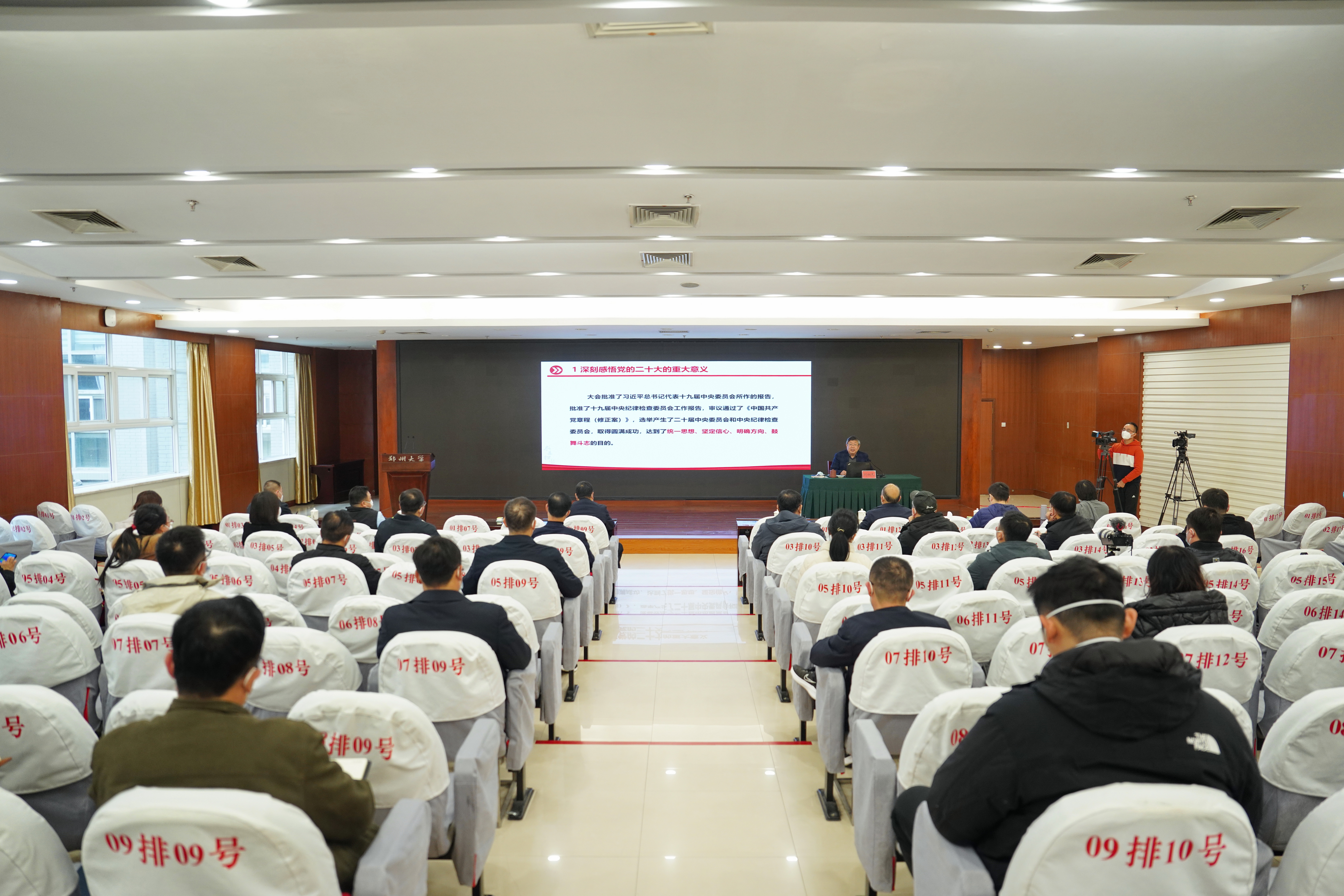 为全面深入学习贯彻党的二十大精神,12月5日,pp电子官方网站举办党的二十大精神宣讲报告会,党的二十大代表、省委宣讲团成员、河南省政协副主席、校党委书记刘炯天在主校区第二报告厅为学校师生宣讲党的二十大精神。全体校领导,校党委理论学习中心组成员,全校中层干部,全校教工、学生党支部书记,全体辅导员,pp电子官方网站学习贯彻党的二十大精神宣讲团成员,巾帼劳模宣讲团成员,博士生宣讲团成员,团学骨干宣讲团成员,骨干思政课教师宣讲团成员等1600余人以线上加线下的形式参加会议。会议由校党委副书记吴宏阳主持。