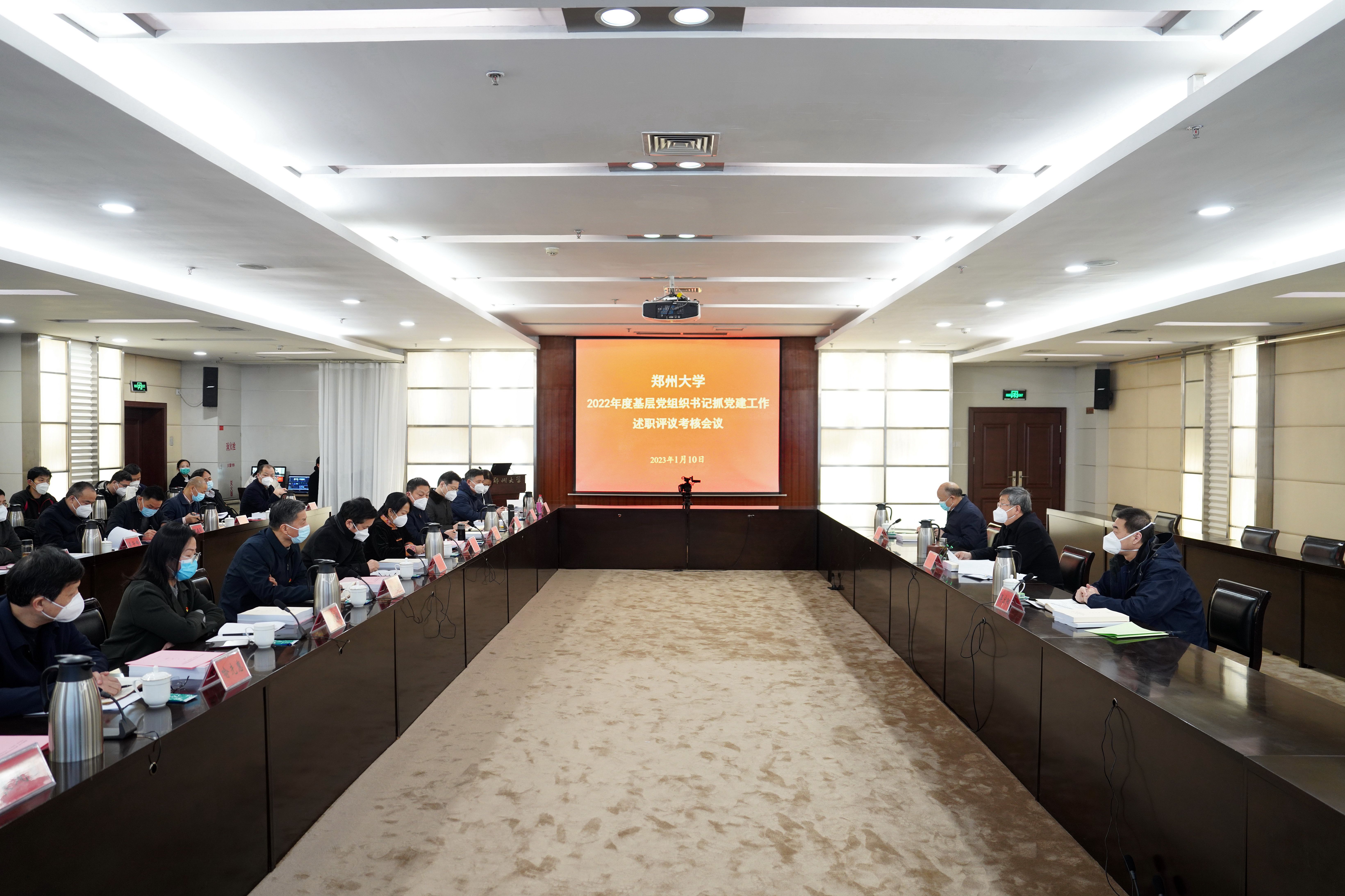 1月10日,pp电子官方网站在主校区召开2022年度基层党组织书记抓党建工作述职评议考核会议,会议采用线上线下相结合的方式召开。校领导刘炯天、吴宏阳、许东升出席会议,学校党的建设工作领导小组成员单位主要负责同志、各基层党委(党总支)书记、各基层党委(党总支)副书记和国家、省级、校级样板党支部书记共计200余人参加会议。会议由校党委书记刘炯天主持。