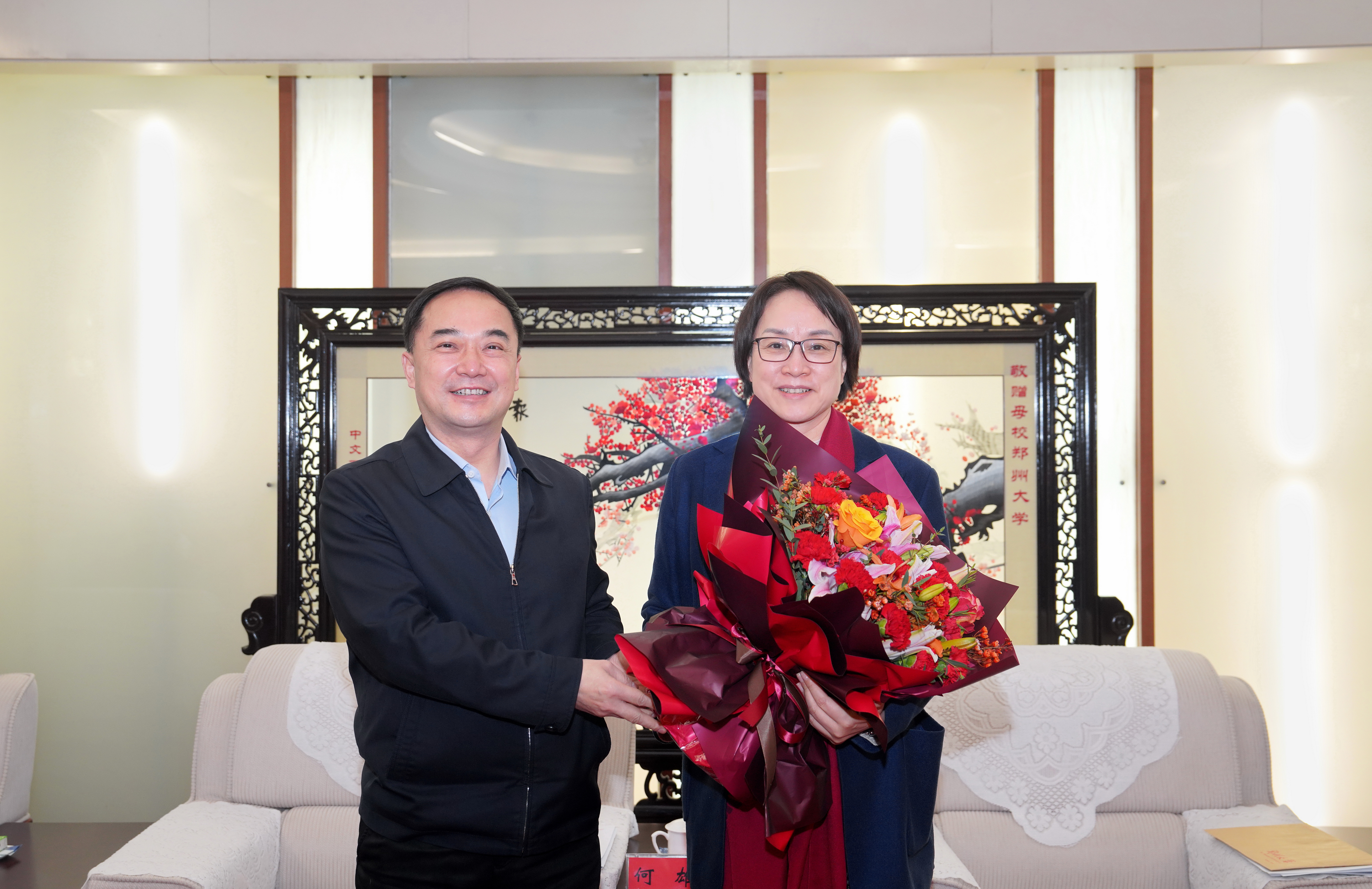 郑州市市长何雄来校看望慰问校长李蓬院士
