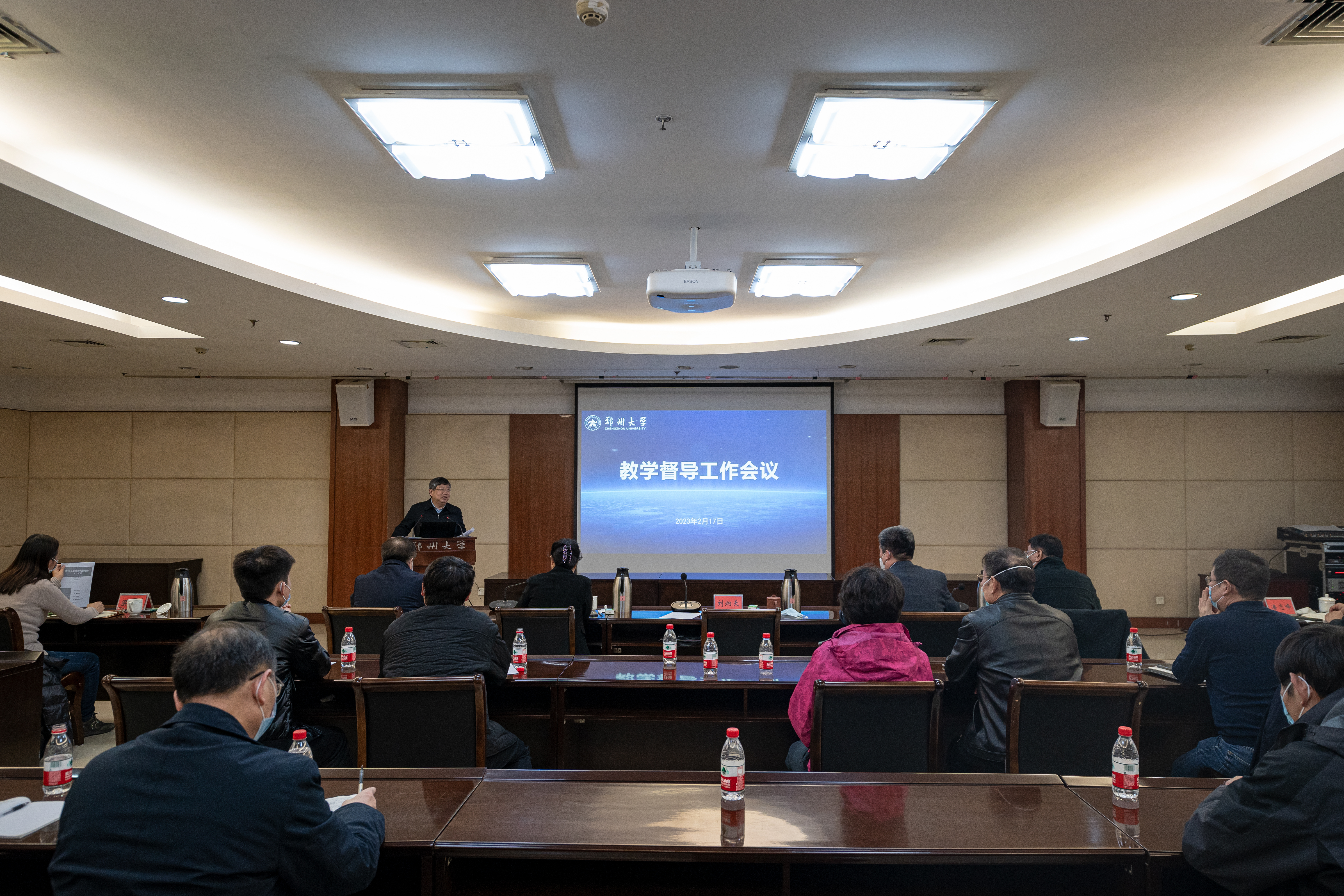2月17日下午,pp电子官方网站2023年教学督导工作会议在主校区召开,省政协副主席、校党委书记、校教学督导委员会主任刘炯天,副校长张倩红、第五届教学督导委员全体人员、党委办公室、学术委员会办公室、研究生院、教务处等相关职能部门负责人参加了会议,会议由张倩红主持。