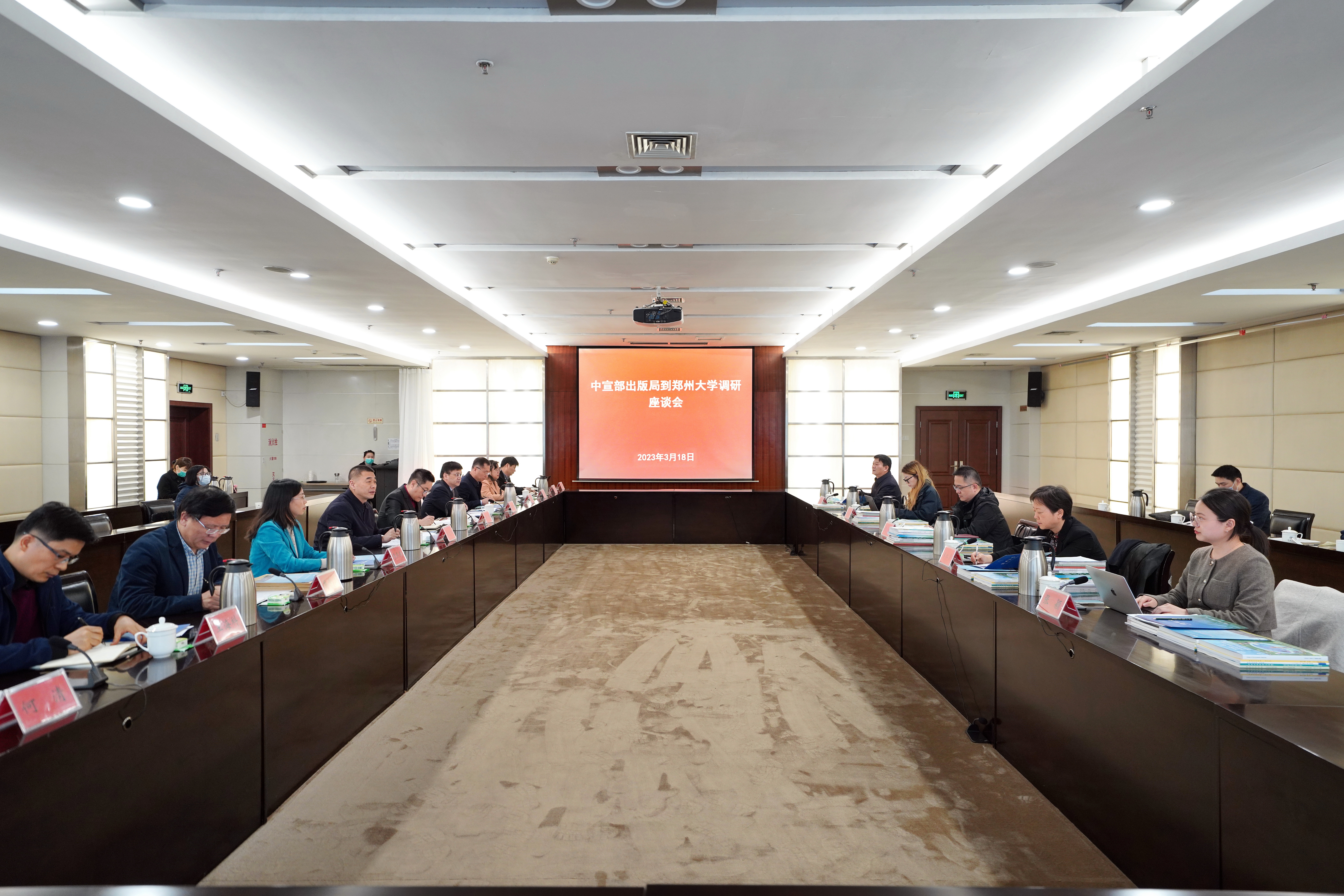 3月18日,中宣部出版局二级巡视员、期刊处处长倪轶,河南省委宣传部二级巡视员、河南省出版协会期刊分会会长李红霞,河南省委宣传部出版处副处长董春民一行来校就学术期刊质量提升工作开展调研座谈。校党委副书记吴宏阳出席会议,校党委常委、宣传部部长厉励,学报编辑部及哲社版、医学版、工学版、理学版负责人,《汉字汉语研究》《大学书法》《磷肥与复肥》等期刊负责人参加座谈。座谈会由出版社、期刊中心负责人主持。