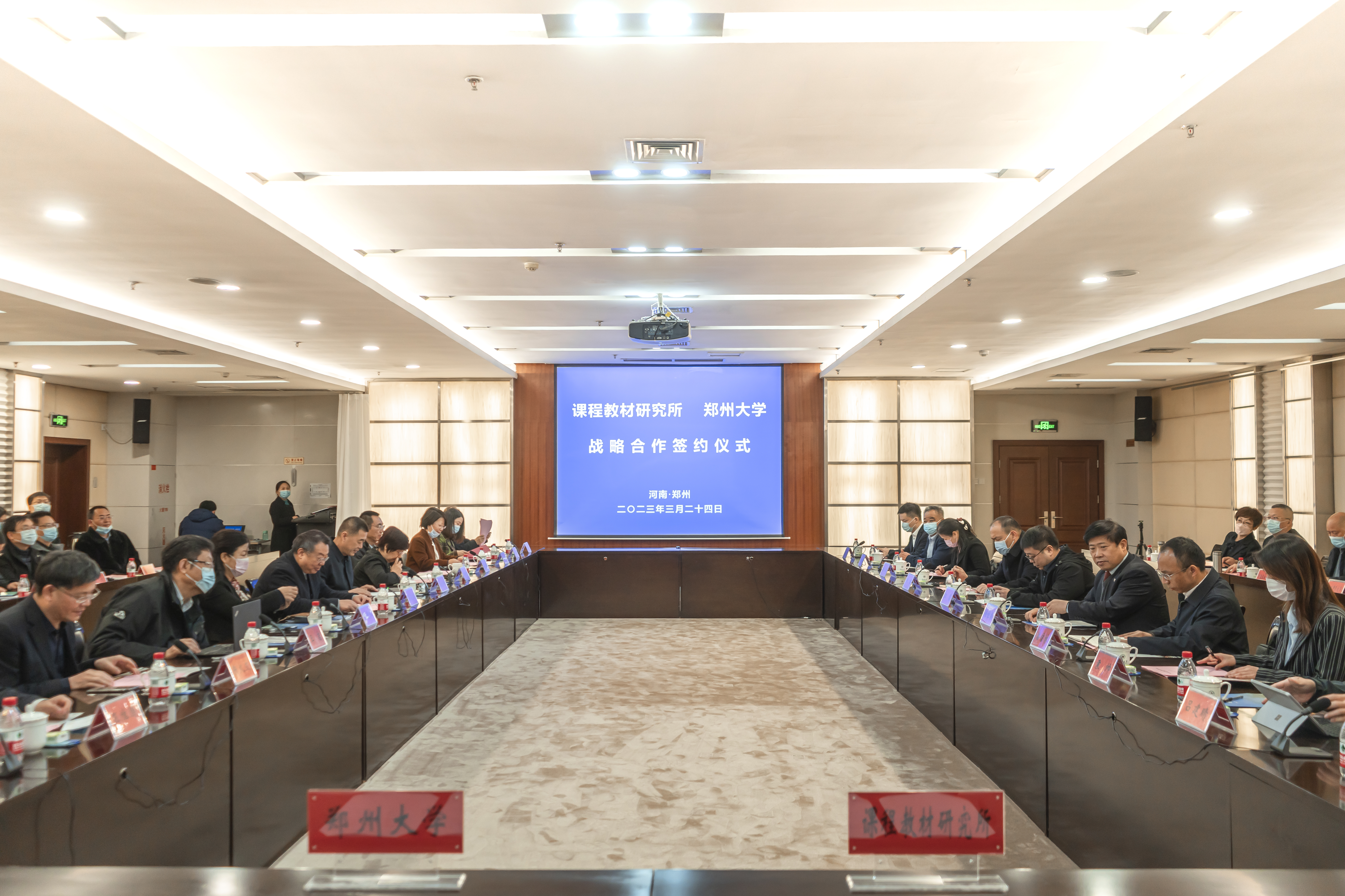 3月24日,教育部课程教材研究所与pp电子官方网站签署合作协议,签约仪式在主校区举行。教育部课程教材研究所副所长江嵩、高校中心主任潘信林,省教育厅二级巡视员徐恒振,省委宣传部理论处处长张锦、省教育厅高教处副处长季双丽,校党委副书记吴宏阳、副校长张倩红出席,教育部课程教材研究所有关工作人员,国内部分高校专家学者、期刊负责同志,河南省十家重点马克思主义学院负责同志,学校相关部门负责同志,马克思主义学院师生代表参加签约仪式。校党委常委、副校长屈凌波主持签约仪式。