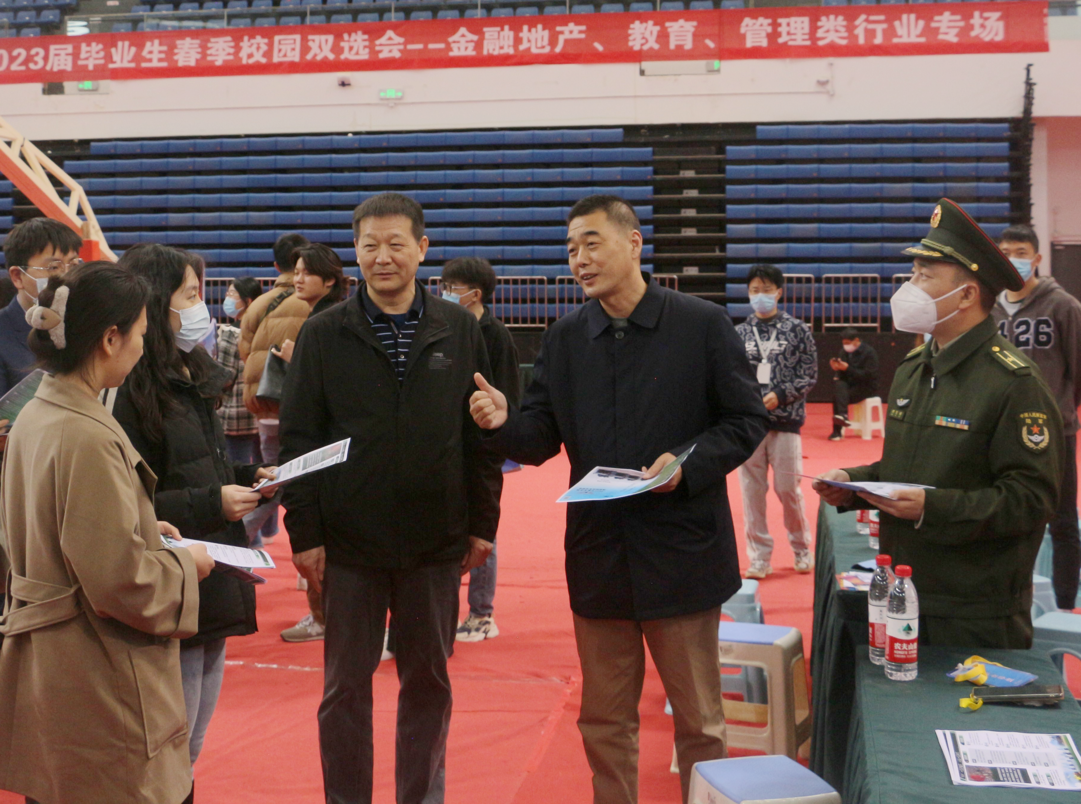 3月24-25日,金融、地产、教育、管理类双选会和生物、医药类双选会分别在主校区和东校园举办,校党委副书记吴宏阳到现场调研,指导校园招聘工作。