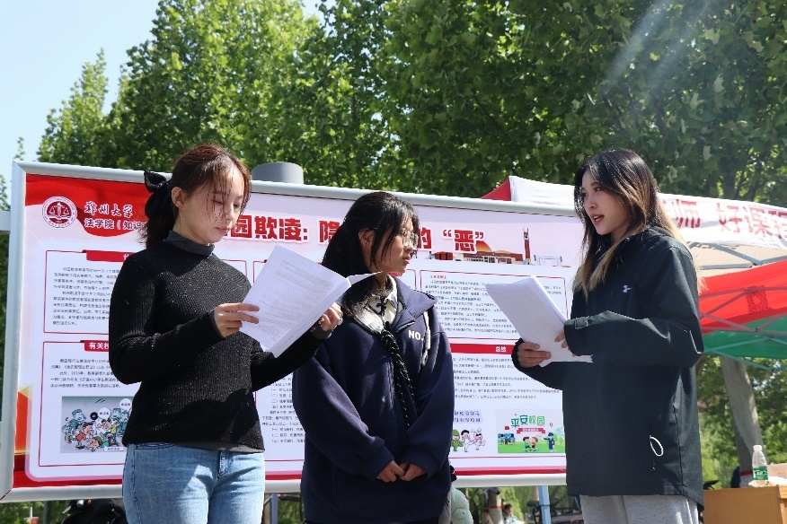 党委宣传部、校团委、法学院联合举办法治教育宣传外展活动,活动持续7个小时,现场气氛热烈。外展现场吸引了众多同学前来参观学习,法学专业研究生们围绕国家安全、消费者权益保护、防范电信诈骗、防范校园欺凌等与大学生息息相关的法律内容进行讲解,为师生答疑解惑、普及法律知识,并邀请同学们参与法治知识闯关答题,引导大家知法、懂法、守法、用法。外展活动增强了师生自觉遵守法律、维护法律权威的意识,有助于增强师生运用法律知识解决现实问题的能力。