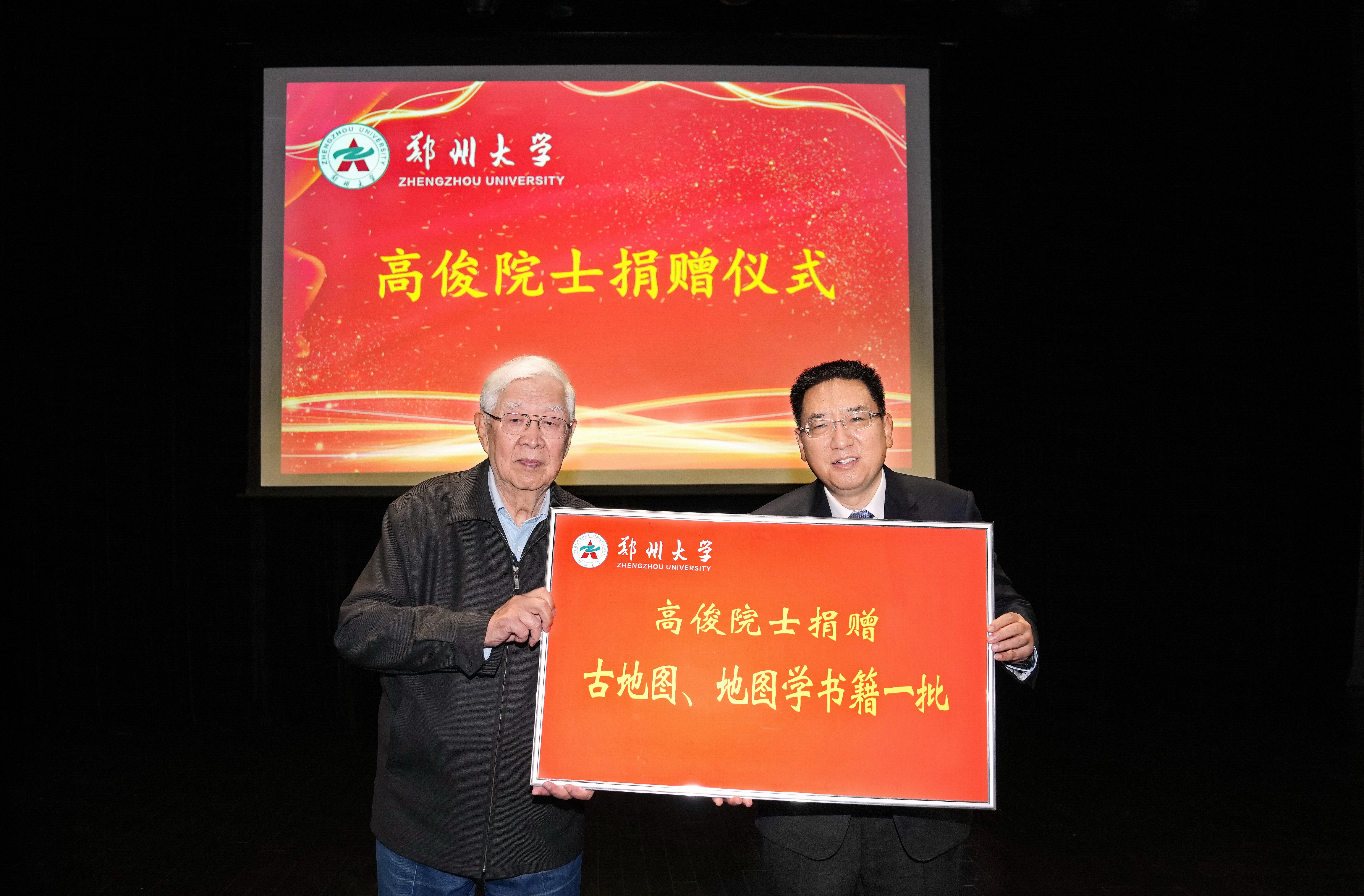 高俊院士捐赠了几十年来捜集积累的部分有关地图学的作品和书籍,并捐赠200万元设立高俊院士地图学空间认知学科发展基金。他介绍了建设地图博物馆和捐赠200万元的初衷,表示自己将跨过九十岁,有幸与地图相伴七十年,胸怀感恩之心进行捐赠,希望通过博物馆和学科平台的建设,实现推动pp电子官方网站地学学科发展、助力双一流学科建设。周成虎院士对发挥该学科平台优势、促进学科建设提出了指导意见,并代表中国科学院地理科学与资源研究所捐赠珍藏国家地图集。