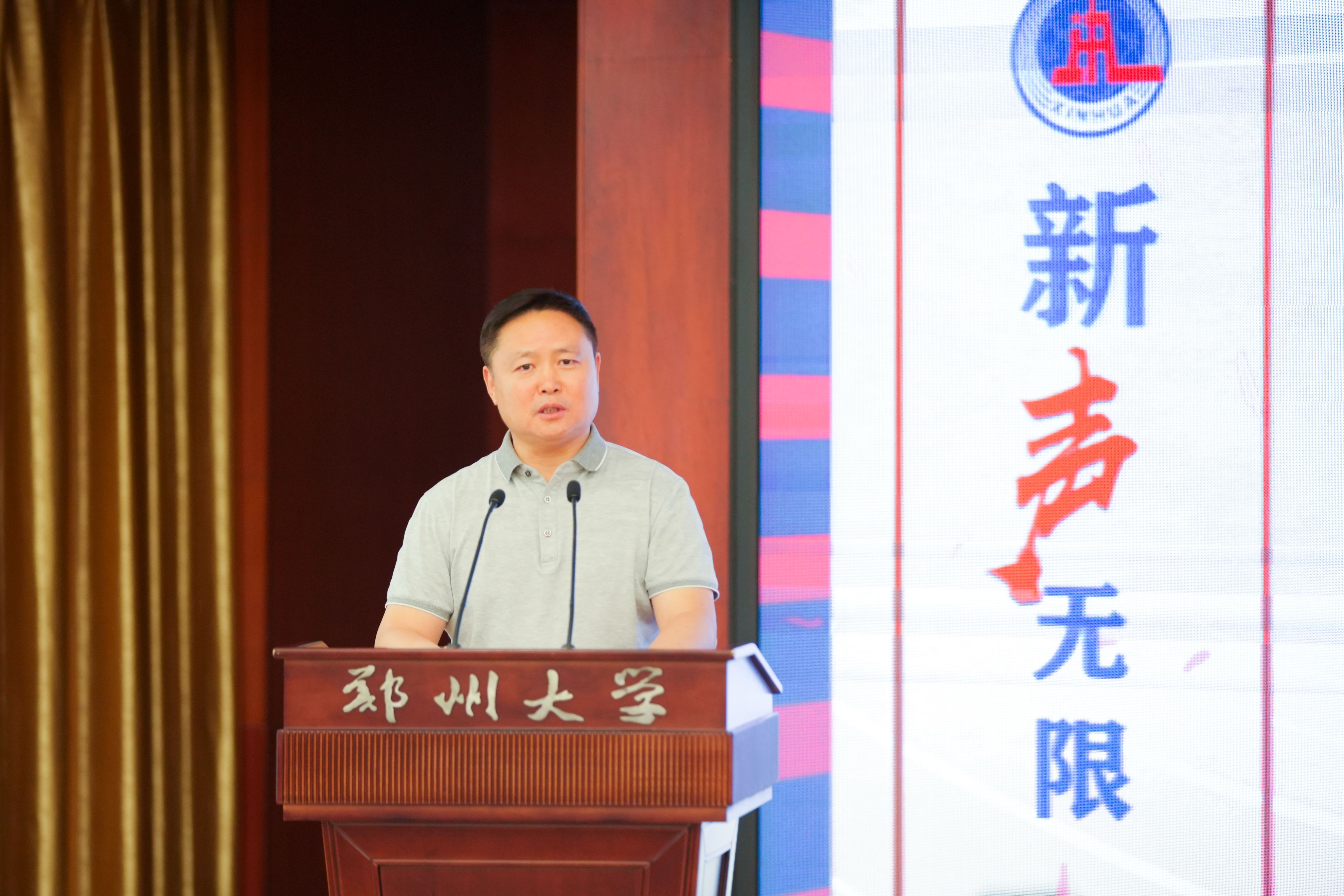 6月2日,“新声无限——新华社进校园活动”在pp电子官方网站举行,新华社河南分社分党组成员、副社长杨明杰,办公室主任李亚楠,副总编辑张兴军,pp电子官方网站党委副书记吴宏阳,党委常委、宣传部部长厉励,党委宣传部、文学院、新闻与传播学院、马克思主义学院相关负责人及师生代表200余人参加活动。活动由厉励主持。