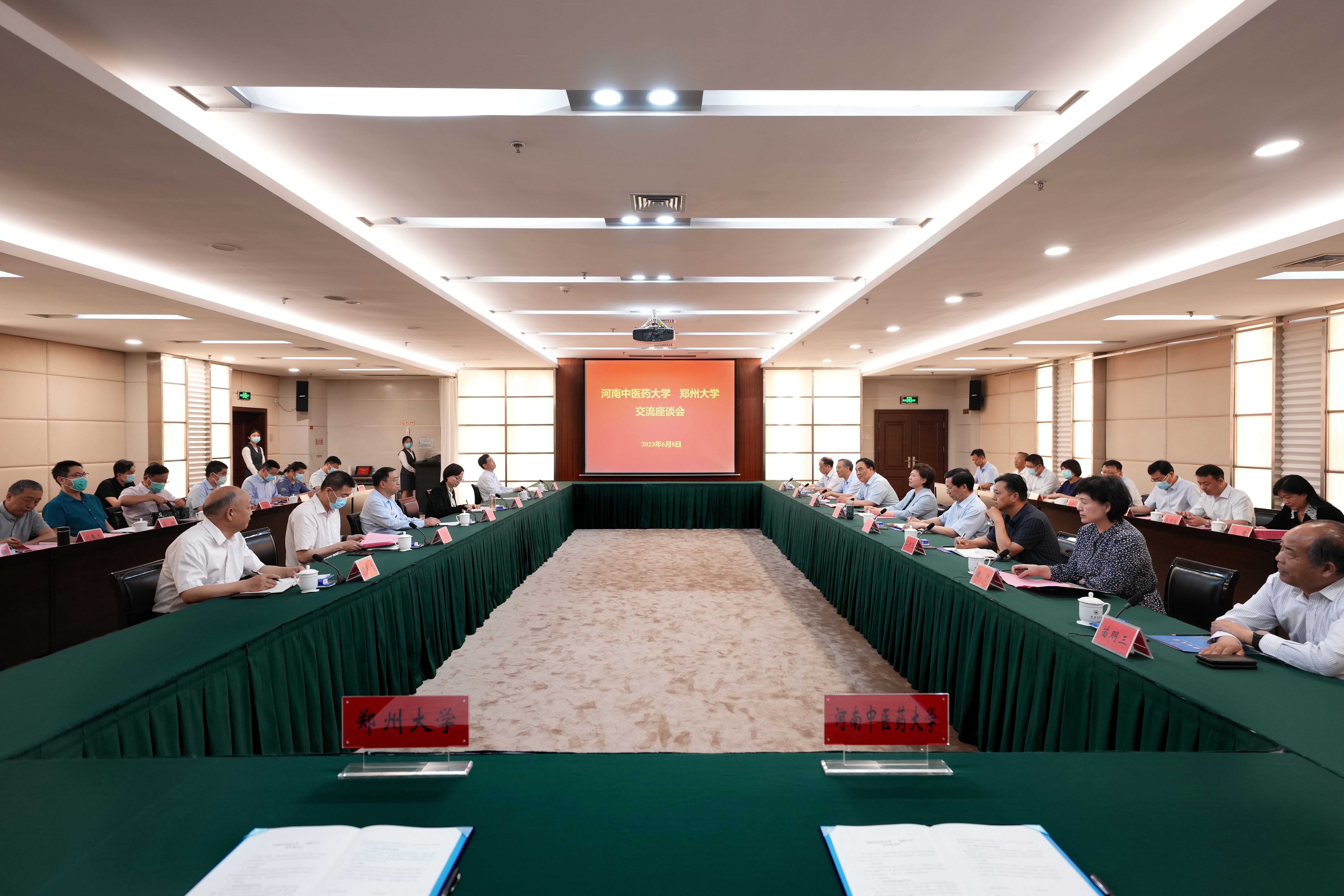 6月9日,河南中医药大学党委书记李小芳、校长王耀献一行来校调研交流主题教育、党的建设、“双一流”建设、附属医院建设与高质量发展等工作。校党委书记别荣海、校长李蓬院士会见李小芳、王耀献一行。双方在主校区综合管理中心召开座谈会,并签订合作备忘录,共叙传统友谊、共商协同育人、共谋合作发展。别荣海主持座谈会。