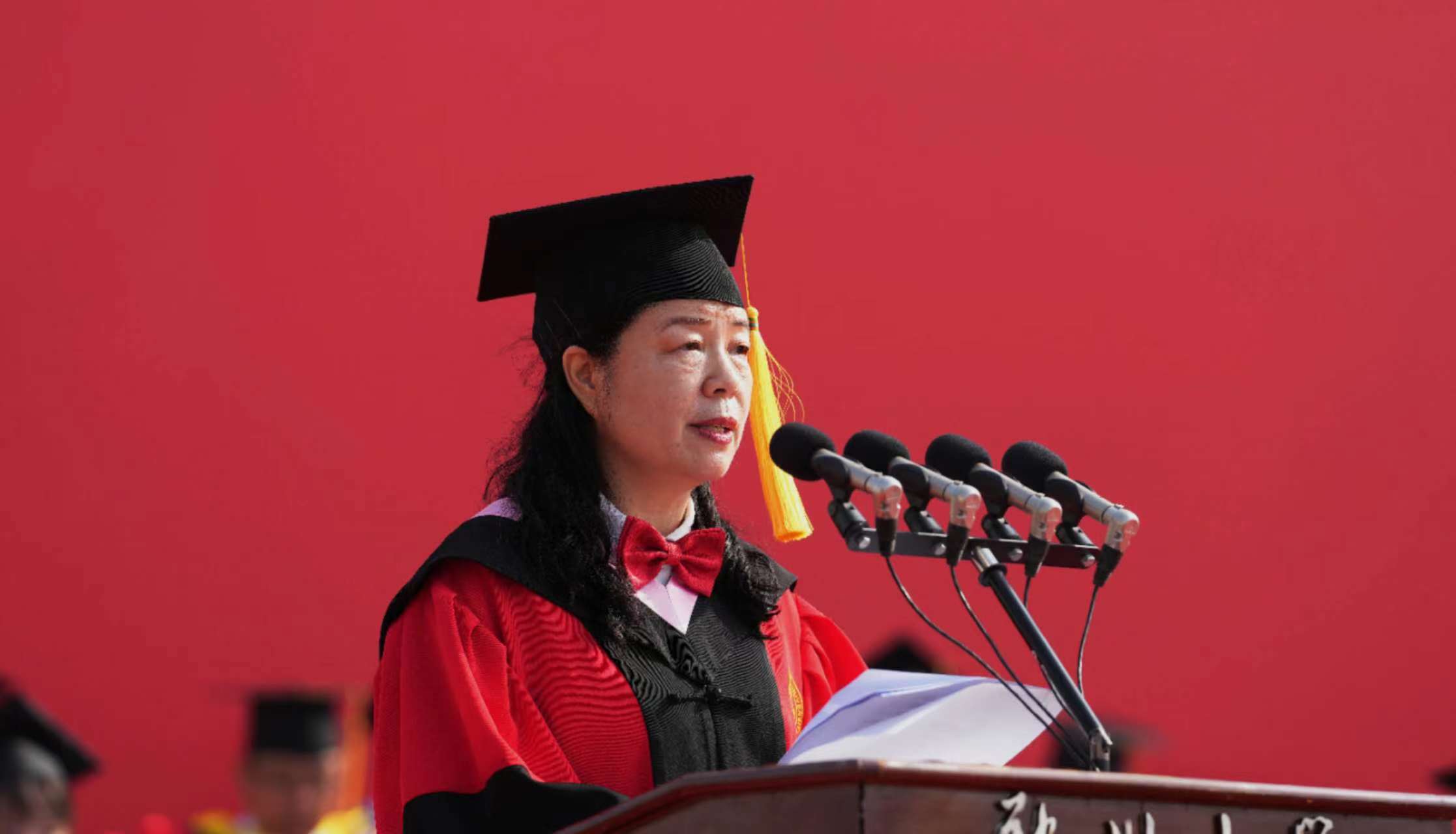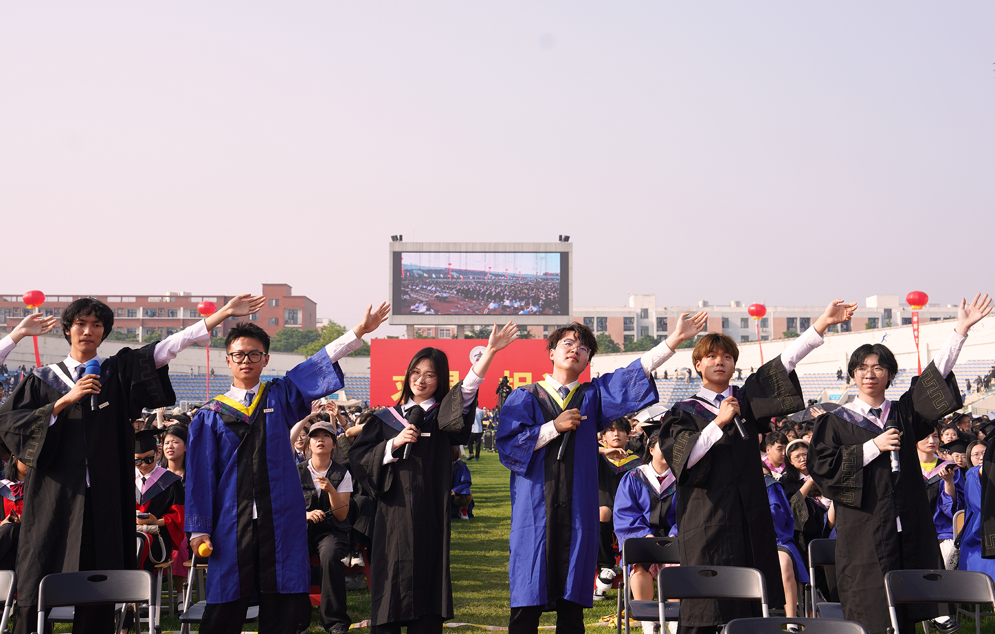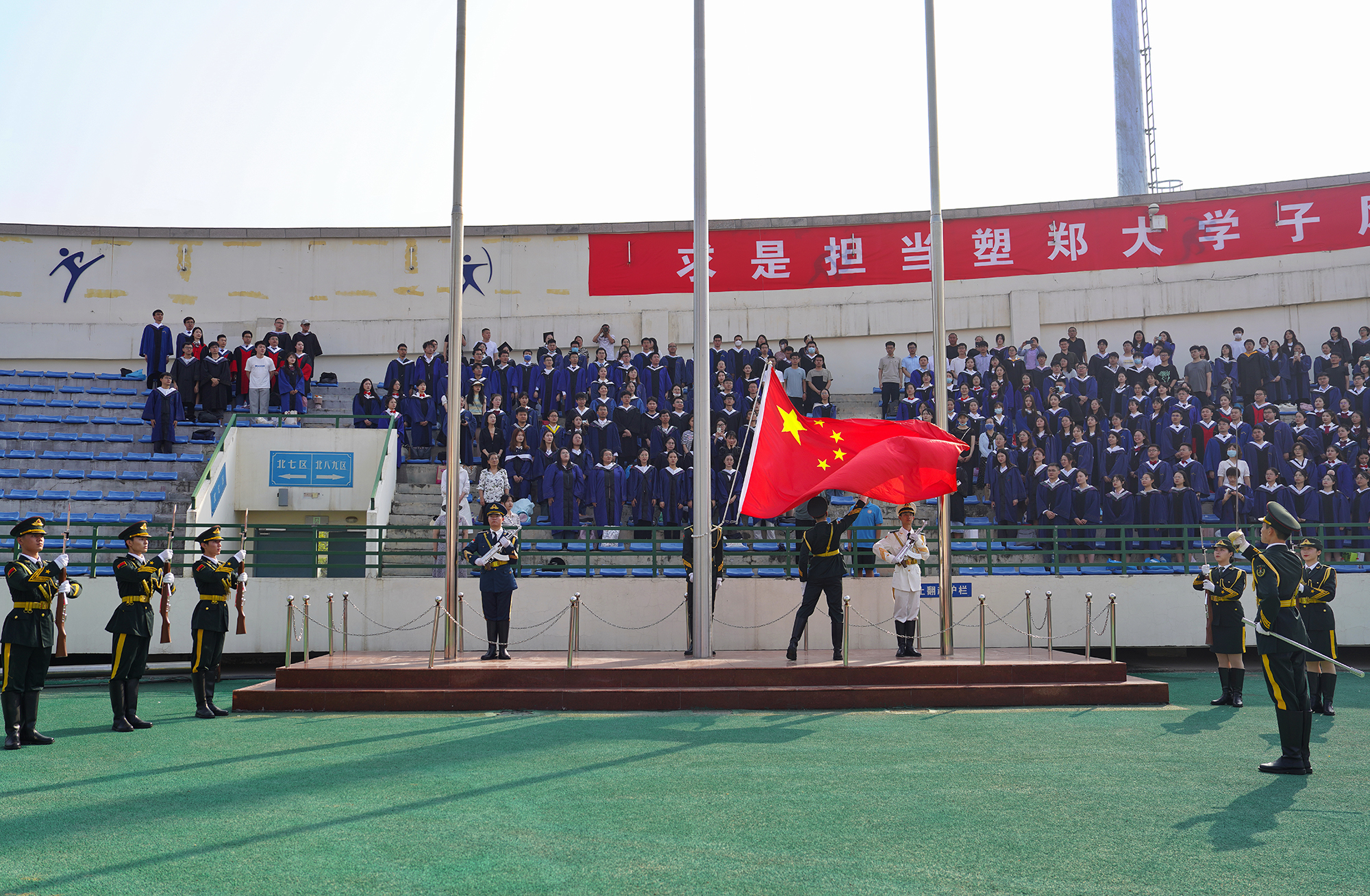 上午8时整,在雄壮的国歌声中,五星红旗冉冉升起,pp电子官方网站2023年毕业典礼暨学位授予仪式正式拉开帷幕。