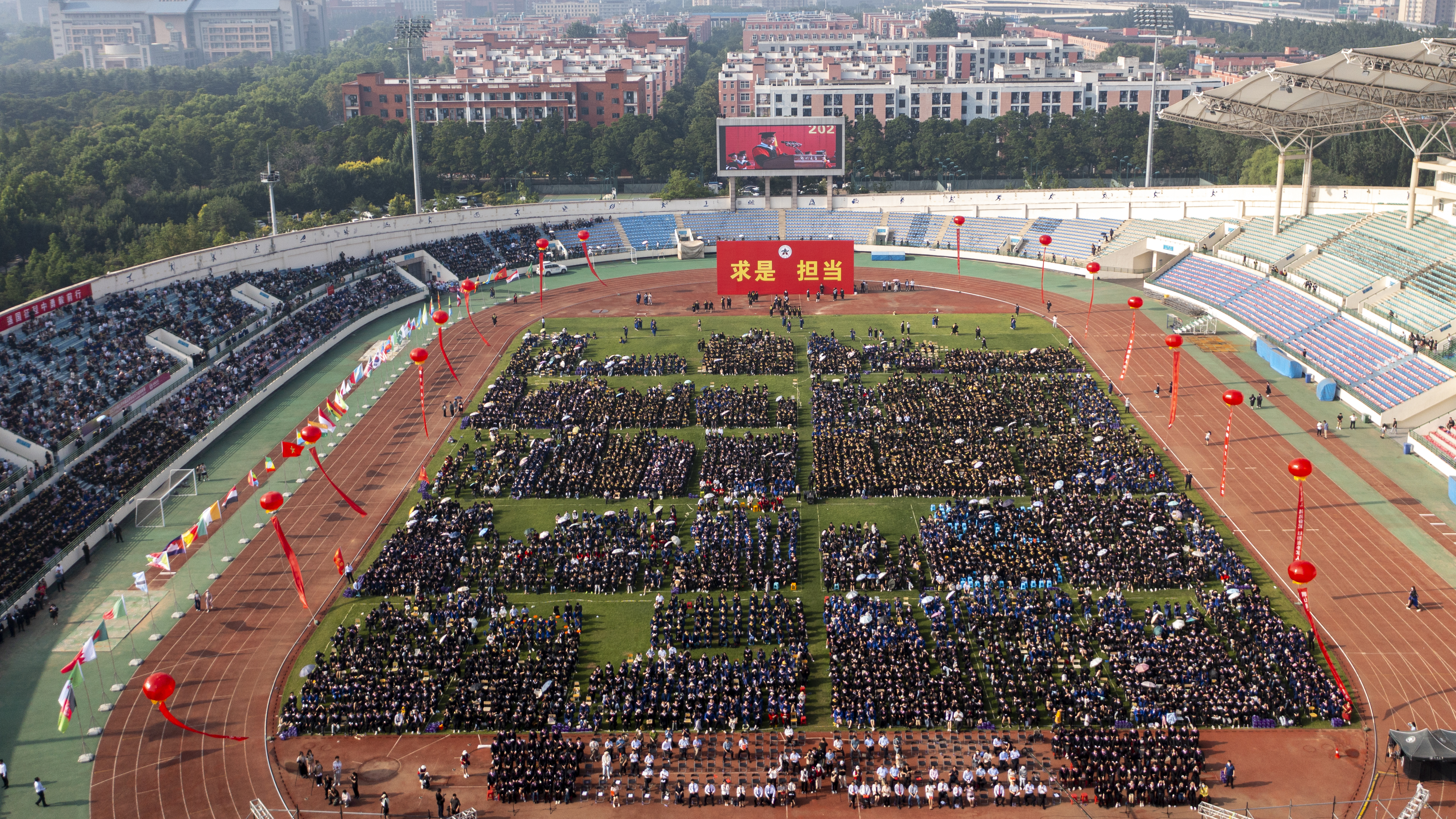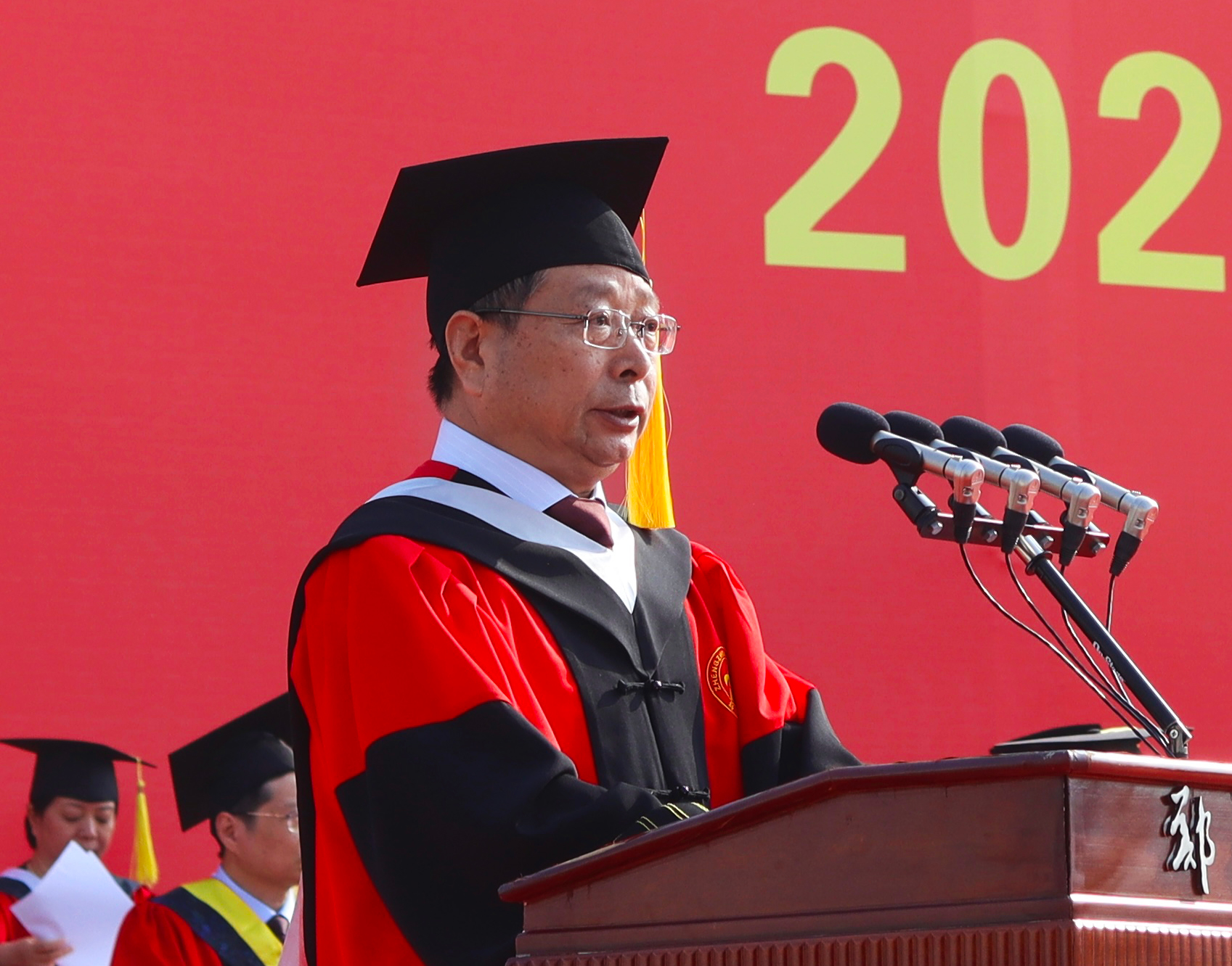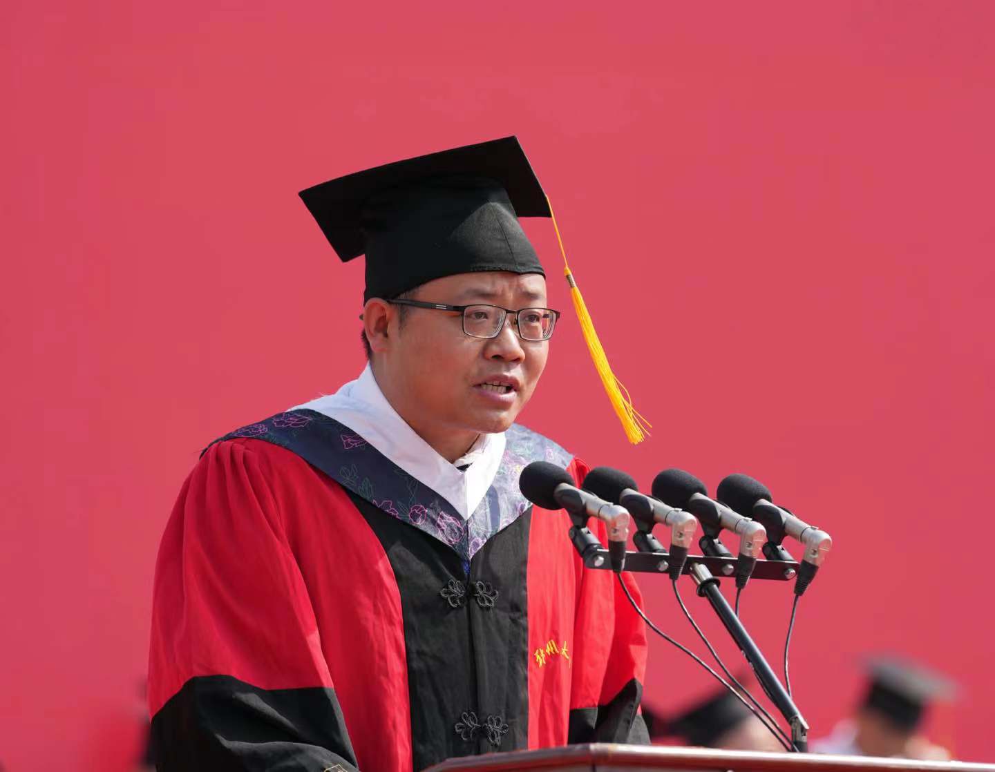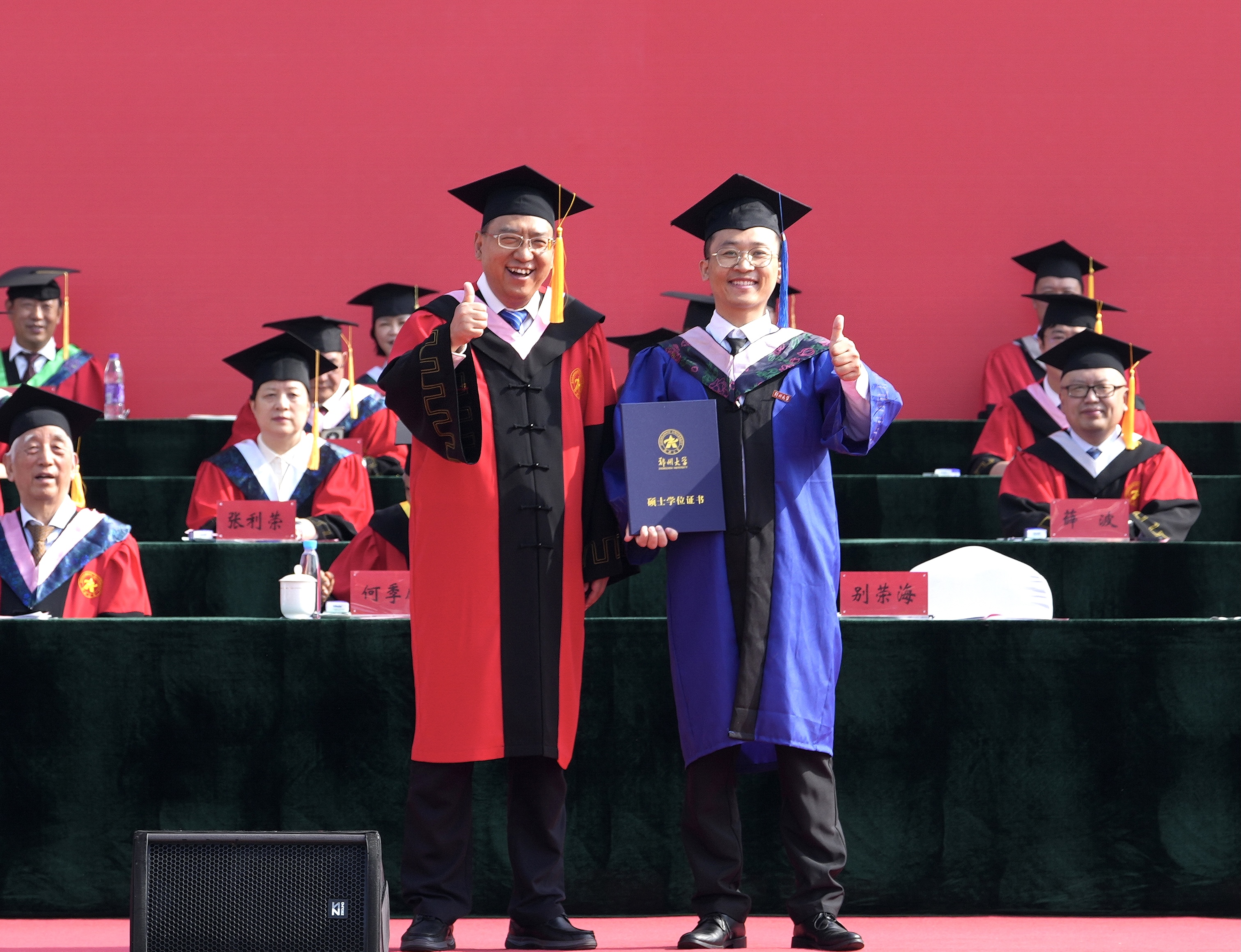 求是担当践使命,扬帆起航正当时。6月20日上午,pp电子官方网站2023年毕业典礼暨学位授予仪式在主校区本源体育场隆重举行。校领导别荣海、李蓬、吴宏阳、张倩红、许东升、赵明皞、单崇新、董子钢、赵中伟、胡少伟,中国工程院院士、中原关键金属实验室主任、pp电子官方网站材料科学与工程学院院长何季麟,中国社会科学院学部委员、pp电子官方网站历史学院院长刘庆柱,中国书法家协会名誉主席,pp电子官方网站终身名誉教授、书法学院院长张海,校友代表、pp电子官方网站工业与民用建筑专业1977级校友、广州大学教授、俄罗斯自然科学院外籍院士、欧洲科学院自然科学学部外籍院士张季超,教师代表、药学院教授、2022年“国家优秀青年科学基金”获得者史进进,高层次人才代表、校学位评定委员会委员代表在主席台就坐。校内各单位主要负责同志,教师代表和毕业生1.8余万人参加了毕业典礼。典礼仪式由校党委副书记、副校长常俊标主持。