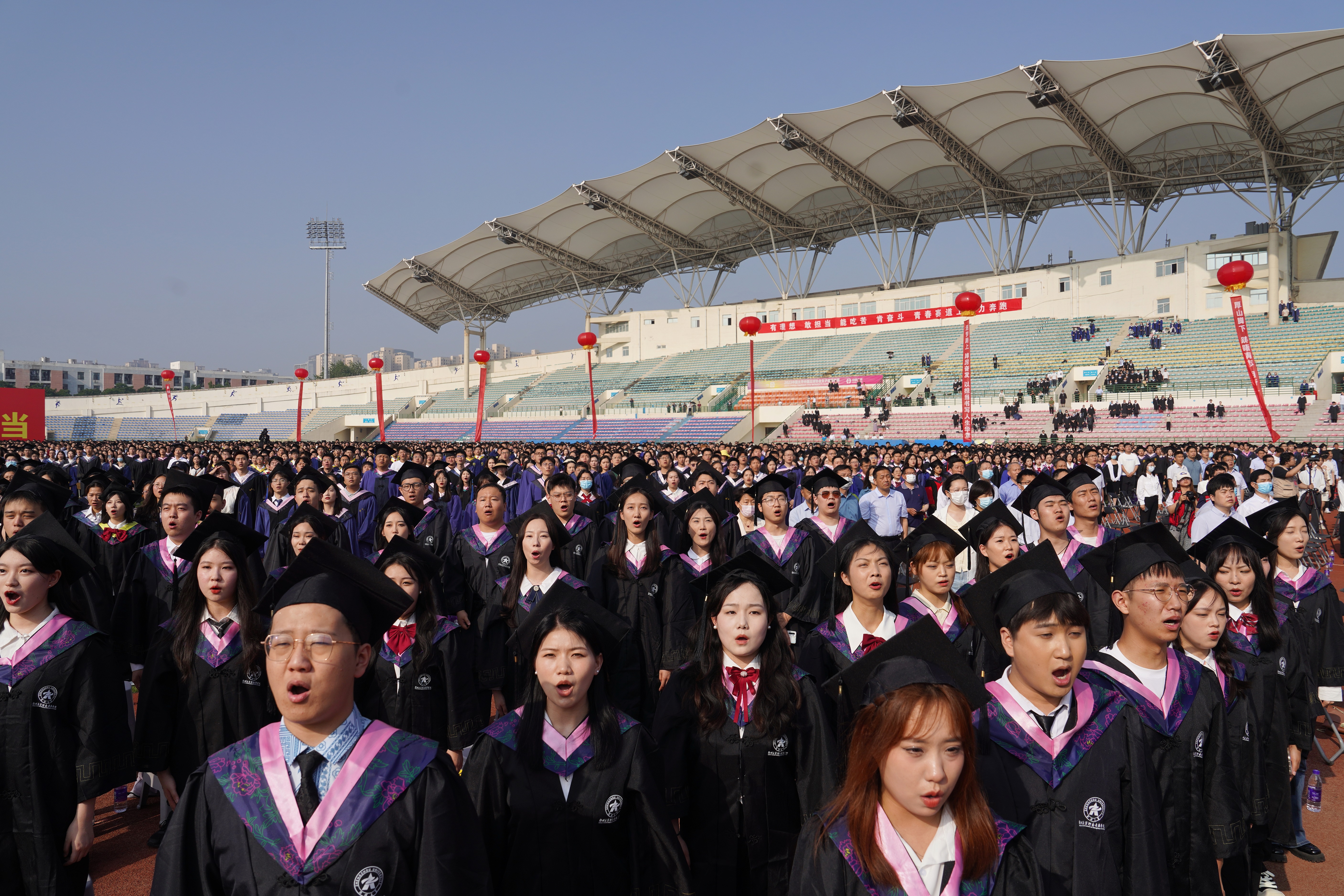 典礼最后,全体师生合唱《pp电子官方网站校歌》《歌唱祖国》,pp电子官方网站2023年毕业典礼暨学位授予仪式在歌声中落下帷幕。