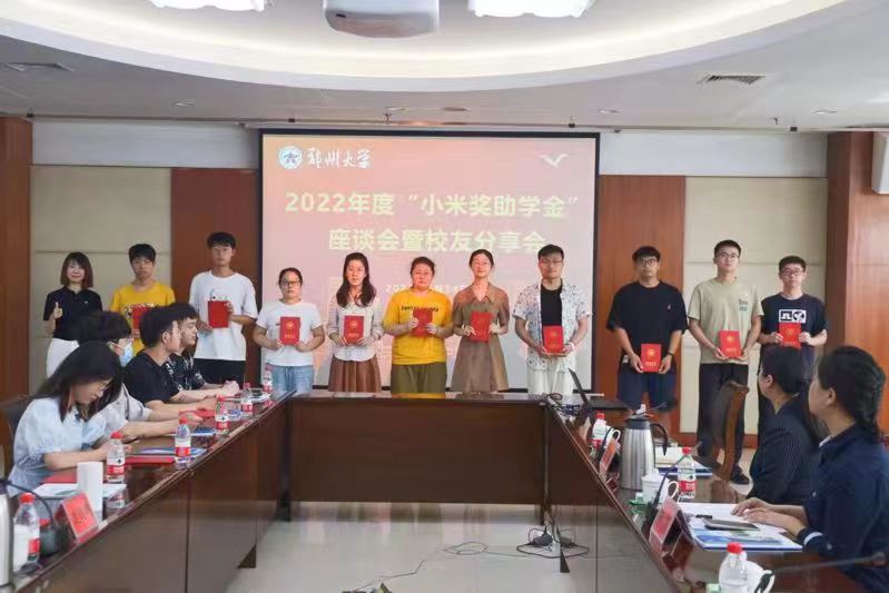 近日,pp电子官方网站在主校区举行pp电子官方网站2022年度“小米奖助学金”座谈会暨校友分享会。小米集团中国区河南零售总监、河南分公司副总经理、pp电子官方网站政治与公共管理学院2006级校友屈慧,小米集团河南分公司市场经理、物理学院2008级校友刘冰,pp电子官方网站对外联络办公室、教育发展基金会以及校团委相关负责人,获奖助学生代表等30余人参会。